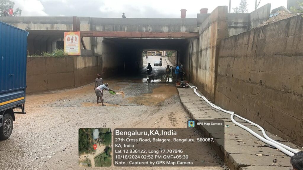ಓಕಳೀಪುರಂ ಅಷ್ಟಪಥ ಕಾರಿಡಾರ್ ನಲ್ಲಿ ರೈಲ್ವೆ ಇಲಾಖೆಯಿಂದ ಕಾಮಗಾರಿ ಪೂರ್ಣಗೊಂಡಿದ್ದು, ಆ ಸ್ಥಳದಲ್ಲಿ ಡ್ರೆöÊನ್ ಮಾಡುವ ಕಾಮಗಾರಿ ಬಾಕಿಯಿರುವುದರಿಂದ ನೀರು ನಿಲ್ಲುತ್ತಿದೆ. ಆದ್ದರಿಂದ ಪರ್ಯಾಯವಾಗಿ ಪಂಪ್ ಇಟ್ಟು ನೀರುನ್ನು ತೆರವುಗೊಳಿಸುವ ಕೆಲಸ ಮಾಡುವ ಮಾಡಲಾಗುತ್ತಿದೆ.