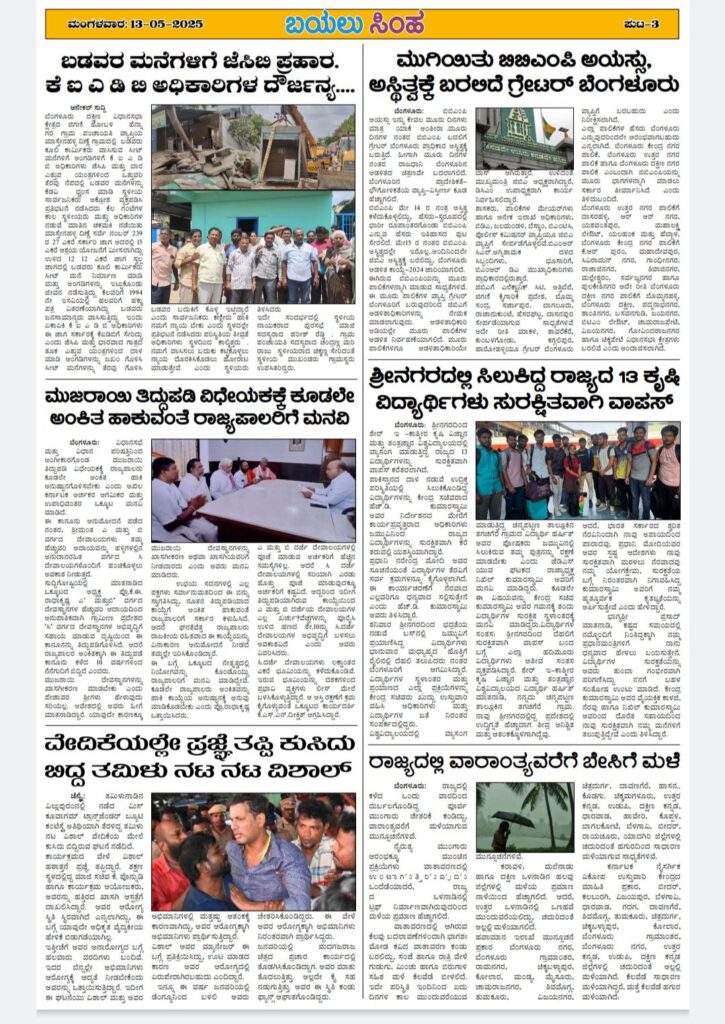 Post navigation ಬೆಂ. ಡೈರಿ ಚುನಾವಣೆ : ಬೆಂ.ಉತ್ತರ ಕ್ಷೇತ್ರದ ಬಿಜೆಪಿ ಅಭ್ಯ ಅಭ್ಯರ್ಥಿ ಸತೀಶ್ ಕಡತನಮಲೆ ನಾಮಪತ್ರ ಸಲ್ಲಿಕೆ : ಯಲಹಂಕದ ಮಹೇಶ್ವರಮ್ಮದೇವಿ ಕರಗ ಇಂದು :