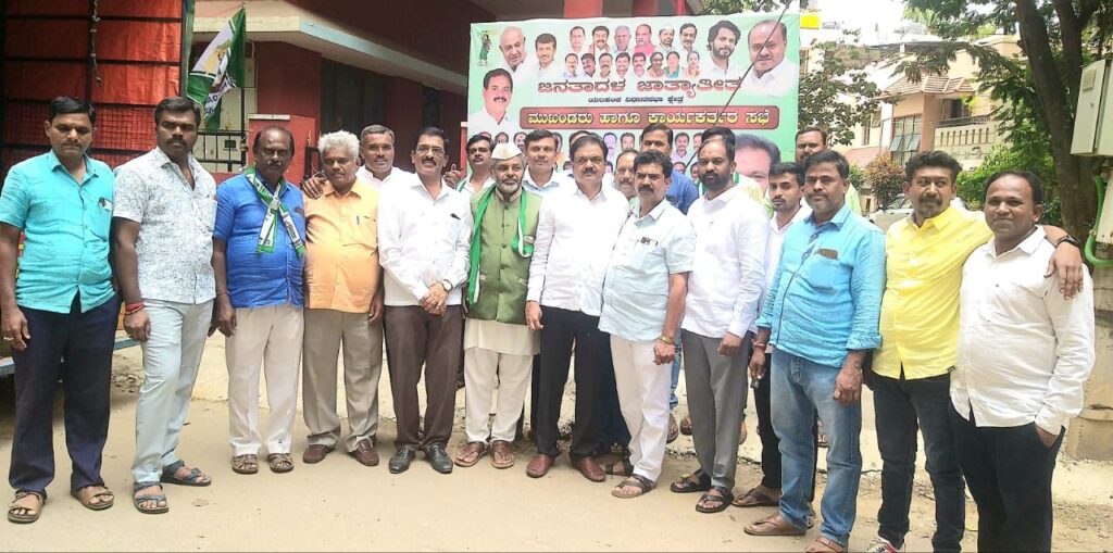 ಯಲಹಂಕ : ವಿಧಾನ ಪರಿಷತ್ ಮಾಜಿ ಸದಸ್ಯರು, ಹಿರಿಯ ಜೆಡಿಎಸ್ ಮುಖಂಡ ಇ.ಕೃಷ್ಣಪ್ಪ(ಮುಂಗಾರು ಮಳೆ) ಅವರ ನೇತೃತ್ವದಲ್ಲಿ, ಯಲಹಂಕ ಕ್ಷೇತ್ರ ಜೆಡಿಎಸ್ ಅಧ್ಯಕ್ಷ ವೇಣುಗೋಪಾಲ್ ಅವರ ಅಧ್ಯಕ್ಷತೆಯಲ್ಲಿ ಯಲಹಂಕ ಉಪನಗರದಲ್ಲಿ ಭಾನುವಾರ ನಡೆದ ಜೆಡಿಎಸ್ ಕಾರ್ಯಕರ್ತರು ಮತ್ತು ಮುಖಂಡರ ಸಭೆಯಲ್ಲಿ ಮುಂಬರುವ ಜಿಲ್ಲಾ ಪಂಚಾಯಿತಿ, ತಾಲ್ಲೂಕು ಪಂಚಾಯಿತಿ, ಗ್ರಾಮ ಪಂಚಾಯಿತಿ ಚುನಾವಣೆ ಸೇರಿದಂತೆ ಸ್ಥಳೀಯ ಸಂಸ್ಥೆಗಳ ಚುನಾವಣೆಯಲ್ಲಿ ಜೆಡಿಎಸ್ ಪಕ್ಷದ ಸಂಘಟನೆ, ಮುಖಂಡರು, ಕಾರ್ಯಕರ್ತರ ಅಭಿಪ್ರಾಯ ಸಂಗ್ರಹಣೆ, ಚುನಾವಣಾ ಸ್ಪರ್ಧೆ ಸೇರಿದಂತೆ ವಿವಿಧ ವಿಷಯಗಳ ಕುರಿತು ಚರ್ಚಿಸಲಾಯಿತು.