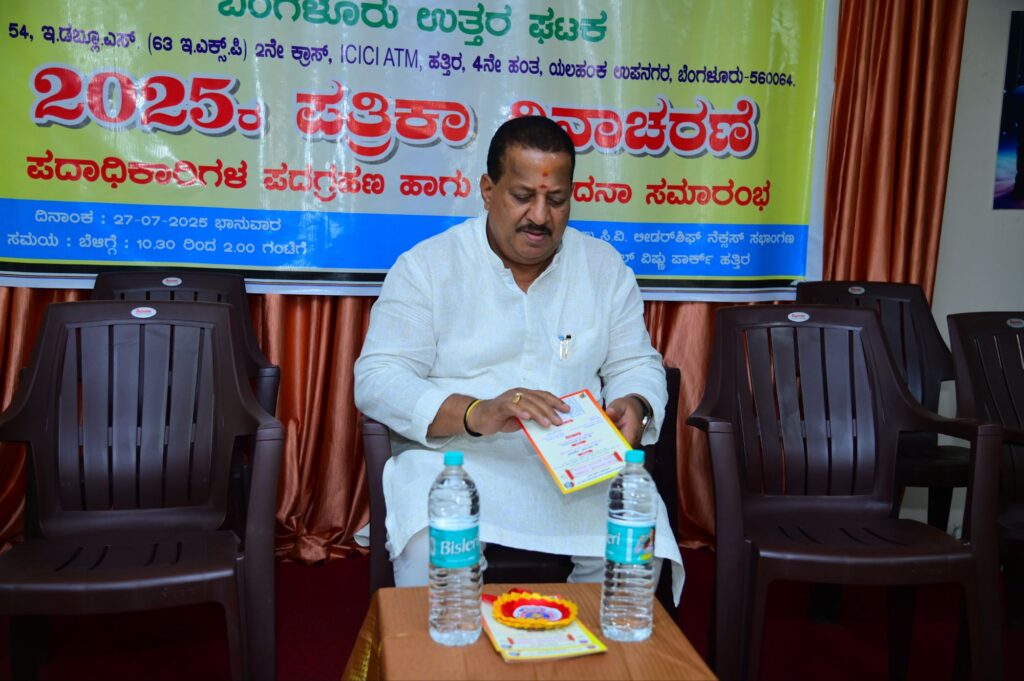 ಯಲಹಂಕ ಉಪನಗರದ ಸಿ ವಿ ವೇಣು ಲೀಡರ್ ಶಿಪ್ ಸಭಾಂಗಣ ದಲ್ಲಿ ನಡೆದ ಕಾರ್ಯಕ್ರಮ ದಲ್ಲಿ, ಬೆಂಗಳೂರು ಉತ್ತರ ಘಟಕ ಹಾಗೂ ಚಿಕ್ಕಬಳ್ಳಾಪುರ, ಹುಬ್ಬಳ್ಳಿ ಯ ಹಾಗೂ ರಾಜ್ಯ ಮಟ್ಟದ ಪದಾಧಿಕಾರಿಗಳು ಪಾಲ್ಗೊಂಡಿದ್ದ ಪತ್ರಕರ್ತ ರನ್ನು ಉದ್ದೇಶಿಸಿ ಮಾತನಾಡಿದ ಕರ್ನಾಟಕ ಸಂಪಾದಕ ರು ಹಾಗೂ ವರಧಿ ಗಾರರ ಸಂಘದ ಸಂಸ್ಥಾಪಕ ಅಧ್ಯಕ್ಷರು ಆದ ಕಲಾವಿದ ವಿಷ್ಣು ರವರು ಪತ್ರಕರ್ತ ರ ಪ್ರಸ್ತುತ ಪರಿಸ್ಥಿತಿ ಹಾಗೂ ಮಾಡಿಕೊಳ್ಳ ಬೇಕಾದ ಮನಃಸ್ಥಿತಿ ಕುರಿತು ಕಿವಿಮಾತು ಹೇಳಿದರು, ಹಿರಿಯ ಪತ್ರಕರ್ತ ಸಚಿವ ಶ್ರೀಧರ್ ಮಾತನಾಡಿ, ಸರ್ಕಾರ ಪತ್ರಕರ್ತರ ಕಲ್ಯಾಣಕ್ಕಾಗಿ ಸಹಕಾರ ನೀಡಬೇಕೆಂದು ಮನವಿ ಮಾಡಿದರು, ಸಂಘದ ರಾಜ್ಯದ್ಯಕ್ಷ ಸೌರಭ ನಾಗರಾಜ್ ರಾಜ್ಯದ ಎಲ್ಲ ಘಟಕ ಗಳ ಬೆನ್ನಿಗೆ ರಾಜ್ಯ ಸಮಿತಿಯು ಸದಾ ಬೆಂಬಲ ವಾಗಿ ನಿಲ್ಲಲಿದೆ ಎಂದು ತಿಳಿಸಿದರು, ಬೆಂಗಳೂರು ಉತ್ತರ ಘಟಕದ ಗೌರವಧ್ಯಕ್ಷ ರಾದ ರಾ ಮ್, ಕು, ಹನುಮಂತ ರಾವ್ ಕಾರ್ಯಕ್ರಮ ದ ಅಧ್ಯಕ್ಷತೆ ವಹಿಸಿ ಮಾತನಾಡುತ್ತ ಕಾರ್ಯಕ್ರಮ ಹೇಗೆ ನಡೆಸಬೇಕು ಎಂಭ ಬಗ್ಗೆ ರೂಪು ರೆಷೆ ಗಳ ಬಗ್ಗೆ ವಿವರಿಸಿದರು, ಕಾರ್ಯಕ್ರಮದಲ್ಲಿ ಉತ್ತರ ಘಟಕದ ಪದಾಧಿಕಾರಿಗಳಿಗೆ ಅಧಿಕಾರ ಪತ್ರ ವಿತರಿಸಲಾಯಿತು, ಕಾರ್ಯಕ್ರಮ ವನ್ನು ಬೆಂಗಳೂರು ಉತ್ತರ ಘಟಕದ ಅಧ್ಯಕ್ಷ ಬಾಗಲೂರ್ ಪ್ರಕಾಶ್ ಸ್ವಾಗತಿಸಿ ನಿರೂಪಣೆ ಮಾಡಿದರು, ಬೆಂಗಳೂರು ಉತ್ತರ ಘಟಕ ದ ಖಜಾಂಚಿ ಹೆಚ್, ಜಯಣ್ಣ ವಂದನಾರ್ಪಣೆ ಮಾಡಿದರು, ಸಮಾರಂಭಕ್ಕೆ ಆಗಮಿಸಿದ ಹಿರಿಯ ನಾಗರಿಕ ರನ್ನು ಸನ್ಮಾನಿಸಲಾಯಿತು, ಜಿಲ್ಲಾಧ್ಯಕ್ಷ, ಉಮೇಶ್, ಹಾಗೂ ಹನುಮಂತು,ಮತ್ತು ಉತ್ತರ ಘಟಕ ದ ಪ್ರಧಾನ ಕಾರ್ಯದರ್ಶಿ ಪ್ರಮೋದ್ (ಪಮ್ಮಿ ) ಕಾರ್ಯಕ್ರಮ ಅಚ್ಚುಕಟ್ಟಾಗಿ ಬರಲು ಶ್ರಮಿಸಿದರು, ಕಾರ್ಯಕ್ರಮ ದಲ್ಲಿ ಸಾಹಿತಿಗಳು, ಬರಹ ಗಾರರು, ವಿಶೇಷವಾಗಿತ್ತು