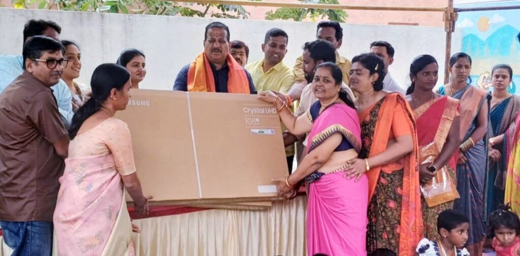 ಯಲಹಂಕ : ಯಲಹಂಕ ಶಾಸಕರಾದ ಎಸ್ ಆರ್ ವಿಶ್ವನಾಥ್ ಅವರು ತಮ್ಮ ಜನ್ಮದಿನದ ಪ್ರಯುಕ್ತ ಯಲಹಂಕದ ಅಲ್ಲಾಳಸಂದ್ರ ಸರ್ಕಾರಿ ಪ್ರಾಥಮಿಕ ಶಾಲೆಯ ಮಕ್ಕಳಿಗೆ ‘ವಿಶ್ವವಾಣಿ ಫೌಂಡೇಶನ್’ ವತಿಯಿಂದ ಉಚಿತ ನೋಟ್ ಪುಸ್ತಕ, ಅಂಗನವಾಡಿ ಮಕ್ಕಳಿಗೆ ಸಮವಸ್ತ್ರ ಮತ್ತು ಅಂಗನವಾಡಿ ಕೇಂದ್ರಗಳಿಗೆ ಸ್ಮಾರ್ಟ್ ಟಿ.ವಿ. ಮುಂತಾದ ಪರಿಕರಗಳನ್ನು ವಿತರಿಸಿದರು.