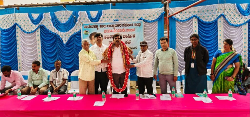 ಯಲಹಂಕ : ಯಲಹಂಕ ಕ್ಷೇತ್ರದ ‘ಸಾದೇನಹಳ್ಳಿ ಹಾಲು ಉತ್ಪಾದಕರ ಸಹಕಾರ ಸಂಘ’ದ ವತಿಯಿಂದ ಬುಧವಾರ ಆಯೋಜಿಸಿದ್ದ 2025-26ನೇ ಸಾಲಿನ ವಾರ್ಷಿಕ ಸಾಮಾನ್ಯ ಸಭೆ ಸಹಕಾರ ಸಂಘದ ಅಧ್ಯಕ್ಷ ಸುರೇಶ್ ಎಸ್.ಕೆ. ಅವರ ಅಧ್ಯಕ್ಷತೆ ಮತ್ತು ಬೆಂ.ಸಹಕಾರ ಹಾಲು ಒಕ್ಕೂಟದ ನಿರ್ದೇಶಕ ಸತೀಶ್ ಕಡತನಮಲೆ ಅವರ ಸಮ್ಮುಖದಲ್ಲಿ ಯಶಸ್ವಿಯಾಗಿ ನೆರವೇರಿತು.