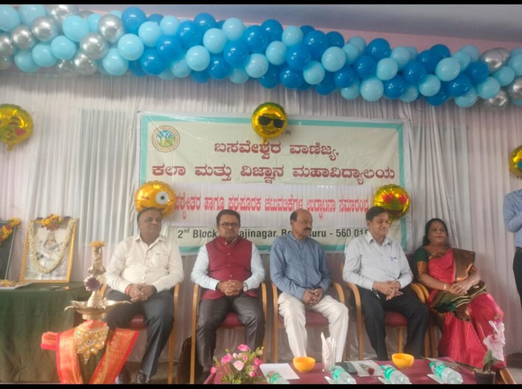 ದಿನಾಂಕ 13 -2 -2025ರ ಬುಧವಾರ ಬಸವೇಶ್ವರ ವಾಣಿಜ್ಯ ಕಲಾ ಮತ್ತು ವಿಜ್ಞಾನ ಮಹಾವಿದ್ಯಾಲಯ ರಾಜಾಜಿನಗರ ಬೆಂಗಳೂರು ಇಲ್ಲಿ 2025-2026 ನೇ ಸಾಲಿನ ನೂತನ ವಿದ್ಯಾರ್ಥಿಗಳಿಗೆ ಏರ್ಪಡಿಸಿದ್ದ ಉದ್ಘಾಟನಾ ಸಮಾರಂಭದಲ್ಲಿ ಮುಖ್ಯ ಅತಿಥಿಗಳಾಗಿ ಆಗಮಿಸಿದ್ದ ಹಿರಿಯ ಯೋಜನಾ ವ್ಯವಸ್ಥಾಪಕರು… ಐಬಿಎಂ … ಲೇಖಕರು.. ಕವಿಗಳೂ ಆದ ಶ್ರೀಪ್ರಕಾಶ ರಾಜಗೋಳಿಯವರು ನೂತನವಾಗಿ ಪದವಿ ಕಾಲೇಜಿಗೆ ಪ್ರವೇಶ ಪಡೆದ ವಿದ್ಯಾರ್ಥಿಗಳಿಗೆ ಸೂರ್ತಿದಾಯಕವಾದ ಮಾತುಗಳನ್ನಾಡುತ್ತಾ ಮಾನವೀಯ ಮೌಲ್ಯಗಳ ಬಗ್ಗೆ ಅರಿವು ಮೂಡಿಸಿದರು. ಕಾರ್ಯಕ್ರಮದ ಅಧ್ಯಕ್ಷತೆ ವಹಿಸಿದ್ದ ಶ್ರೀ ಜಬಸಸಂ (ನಿ) ಅಧ್ಯಕ್ಷರಾದ ಶ್ರೀಎಸ್ ಎಸ್ ದೊಡ್ಡಣ್ಣನವರ ಮಾತನಾಡಿ ಯಶಸ್ವಿ ವಿದ್ಯಾರ್ಥಿಗಳಾಗಬೇಕೆಂದು ತಿಳುವಳಿಕೆ ಮೂಡಿಸಿದರು. ಉಪಾಧ್ಯಕ್ಷರಾದ ಶ್ರೀಬಸವರಾಜ ಬಿರಾದಾರರವರು ನಿರ್ದೇಶಕರಾದ ಶ್ರೀಶಿವಕುಮಾರ ಸರಸೆಟ್ಟಿಯವರು ವಿದ್ಯಾರ್ಥಿಗಳಿಗೆ ಶುಭ ಕೋರಿದರು… ಪ್ರಾಂಶುಪಾಲರಾದ ಡಾ. ಶೀಲಾ ದೇವಿ ಎಸ್ ಮಳಿಮಠರವರು ಪ್ರಾಸ್ತಾವಿಕ ನುಡಿಗಳಲ್ಲಿ ವಿದ್ಯಾರ್ಥಿಗಳು ಕೌಶಲ್ಯಾಧಾರಿತ ವ್ಯಕ್ತಿತ್ವವನ್ನು ಬೆಳೆಸಿಕೊಳ್ಳಬೇಕೆಂದು ಮನವರಿಕೆ ಮಾಡಿಕೊಟ್ಟರು. ಸಂಚಾಲಕರಾದ ಶ್ರೀಮತಿ ಜ್ಯೋತಿ ಪಿ ರಾಜ್ಯಶಾಸ್ತ್ರ ವಿಭಾಗದ ಮುಖ್ಯಸ್ಥರು ಅವರು ಕಾರ್ಯಕ್ರಮವನ್ನು ಯಶಸ್ವಿಗೊಳಿಸಿದರು… ನಿರೂಪಣೆ ಶ್ರೀಗಿರೀಶ ಪಿಹೆಚ್.. ಸ್ವಾಗತ ಶ್ರೀಗಿರೀಶ ವೈ.. ನಡೆಯಿಸಿಕೊಟ್ಟರು ವಿದ್ಯಾರ್ಥಿ ಸಂಚಾಲಕರಾದ ಶರಣಪ್ಪ ರೀನಾ ಪ್ರಜ್ವಲ ಉಪಸ್ಥಿತರಿದ್ದರು.