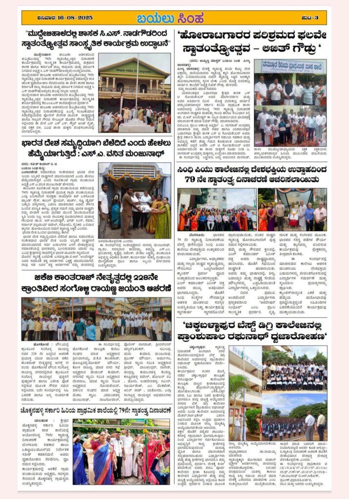 Post navigation ಆಕ್ಸ್ಫರ್ಡ್ ಆವರಣದಲ್ಲಿ ವಿಜೃಂಭಣೆಯ ಸ್ವಾತಂತ್ರ್ಯೋತ್ಸವ ಧರ್ಮಸ್ಥಳ ವಿರುದ್ಧದ ಅಪಪ್ರಚಾರಕ್ಕೆ ಸಿಡಿದೆದ್ದ ಶಾಸಕ ಎಸ್ ಆರ್. ವಿಶ್ವನಾಥ್ :