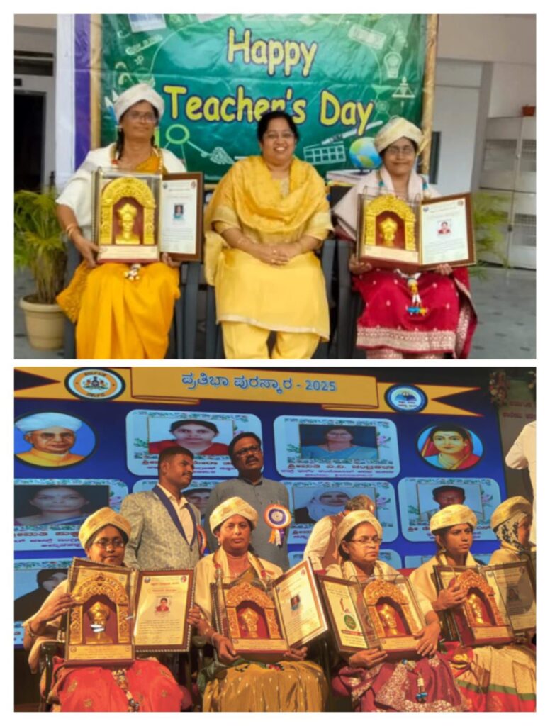 ಈ ಸಂದರ್ಭದಲ್ಲಿ ಅವಿರತ ಸೇವೆ ಸಲ್ಲಿಸಿದ ಶಿಕ್ಷಕರಿಗೆ 2025 ನೇ ಸಾಲಿನ ಉತ್ತಮ ಶಿಕ್ಷಕ / ಶಿಕ್ಷಕಿ ಪ್ರಶಸ್ತಿಯನ್ನು ನೀಡಿ ಗೌರವಿಸಲಾಯಿತು.
