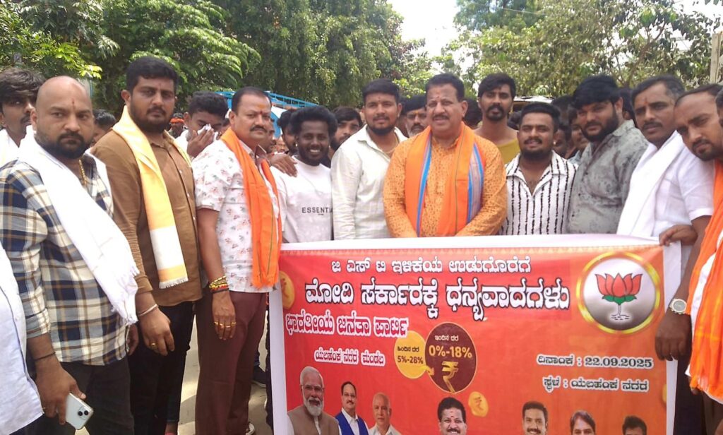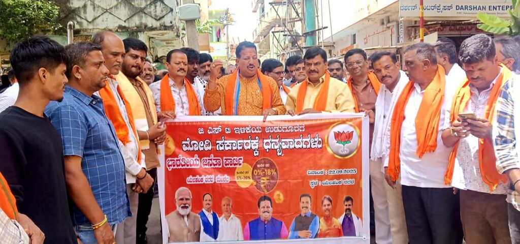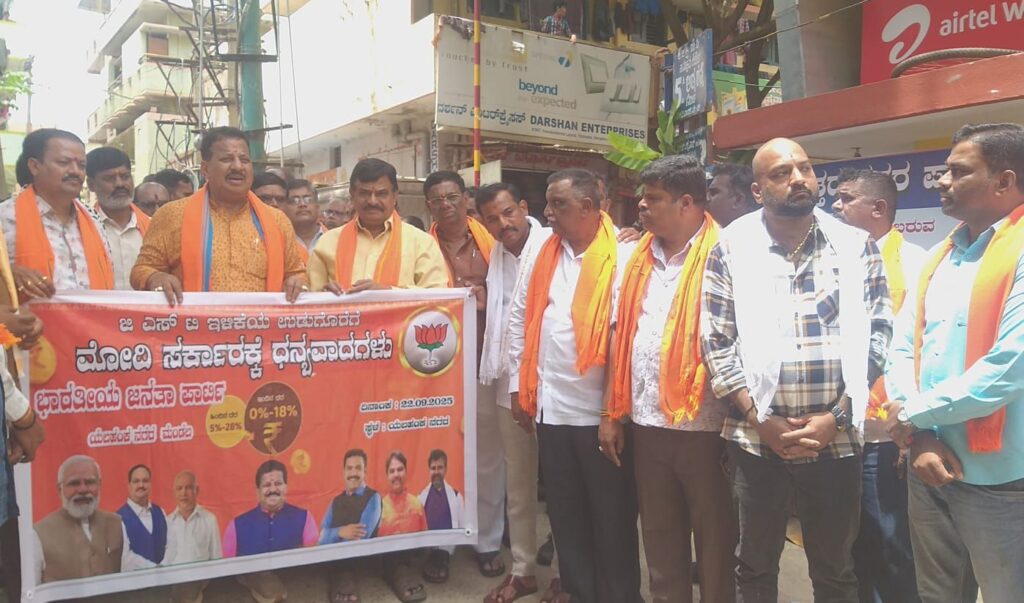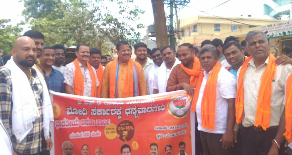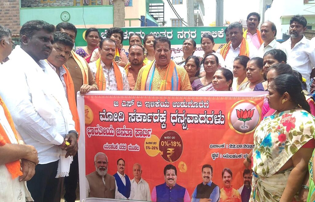 ಕೆಲ ದಿನಗಳ ಹಿಂದೆ ಪ್ರಧಾನಿ ನರೇಂದ್ರ ಮೋದಿಯವರು ದೇಶದ ಜನತೆಗೆ ದಸರಾ, ದೀಪಾವಳಿಗೆ ದೊಡ್ಡ ಉಡುಗೊರೆ ನೀಡುವ ಭರವಸೆ ನೀಡಿದ್ದರು. ಇದೀಗ ಜಿ.ಎಸ್.ಟಿ.ಯಲ್ಲಿ ಗಣನೀಯ ಪ್ರಮಾಣದ ಇಳಿಕೆ ಮಾಡಿ ಜನಸಾಮಾನ್ಯರ ಜೀವನ ನಿರ್ವಹಣೆಯನ್ನು ಸರಳಗೊಳಿಸುವ ಮೂಲಕ ಕೊಟ್ಟ ಮಾತು ಉಳಿಕೊಂಡಿದ್ದಾರೆ, ಈ ಸತ್ಕಾರ್ಯಕ್ಕಾಗಿ ಪ್ರಧಾನಿ ನರೇಂದ್ರ ಮೋದಿಯವರಿಗೆ ಮತ್ತು ಹಣಕಾಸು ಸಚಿವೆ ನಿರ್ಮಲಾ ಸೀತಾರಾಮನ್ ಅವರಿಗೆ ಜನತೆಯ ಪರವಾಗಿ ಅಭಿನಂದಿಸುವುದಾಗಿ ಎಸ್.ಆರ್.ವಿಶ್ವನಾಥ್ ತಿಳಿಸಿದರು. ಇದೇ ವೇಳೆ ಬಿಜೆಪಿ ಮುಖಂಡರು ಮತ್ತು ಕಾರ್ಯಕರ್ತರು ನರೇಂದ್ರ ಮೋದಿಯವರು ಮತ್ತು ನಿರ್ಮಲಾ ಸೀತಾರಾಮನ್ ಅವರ ಪರ ಘೋಷಣೆ ಕೂಗಿ ಸಂಭ್ರಮ ಆಚರಿಸಿದರು.