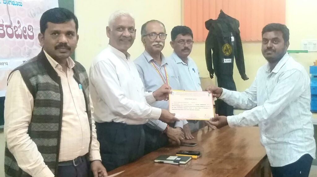 ಕಾರ್ಯಕ್ರಮದಲ್ಲಿ ಜೇನು ಕೃಷಿ ತರಬೇತಿ ಪಡೆದ ರಾಜ್ಯದ ವಿವಿಧ ಜಿಲ್ಲೆಗಳ ರೈತರಿಗೆ ತರಬೇತಿ ಪ್ರಮಾಣ ಪತ್ರ ನೀಡಿ ಗೌರವಿಸಲಾಯಿತು.