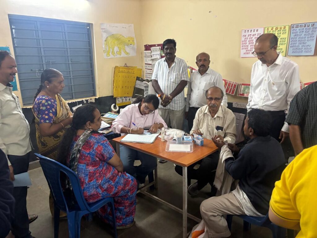 . ಆರೋಗ್ಯ ತಪಾಸಣೆ: ಮಧುಮೇಹ ಪತ್ತೆ ಮತ್ತು ಅಧಿಕ ರಕ್ತದೊತ್ತಡ ತಪಾಸಣೆ (BP) (ಪುರುಷರು ಮತ್ತು ಮಹಿಳೆಯರಿಗೆ)ಕಣ್ಣಿನ ತಪಾಸಣೆ: ಗ್ರಾಮಸ್ಥರಿಗೆ