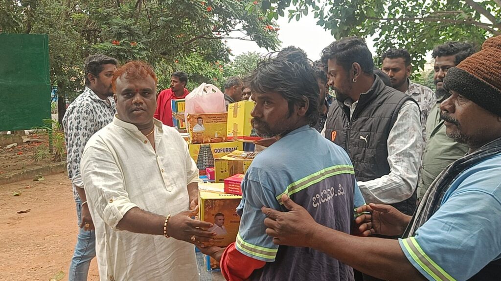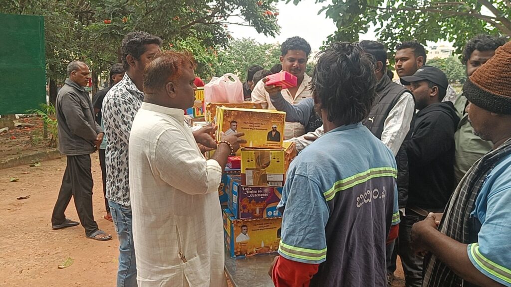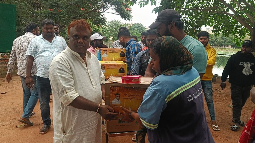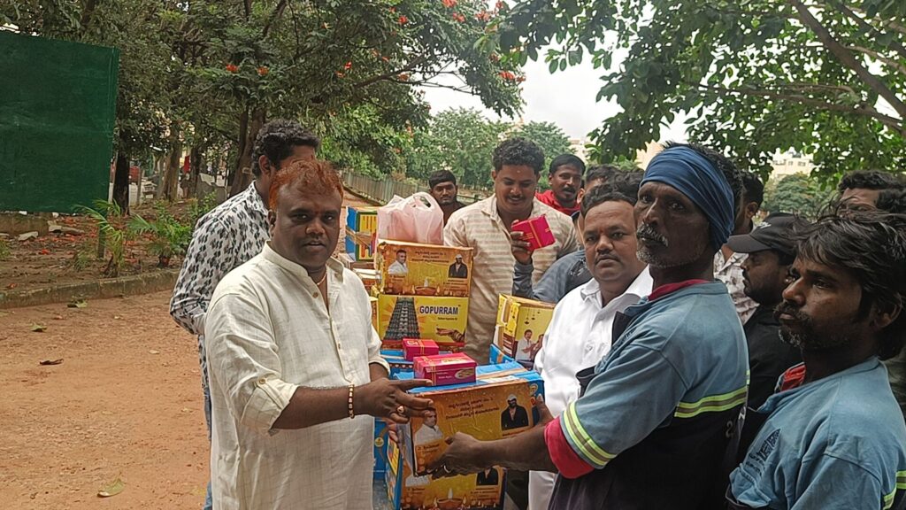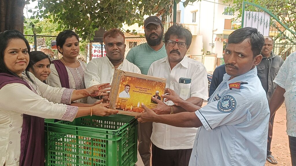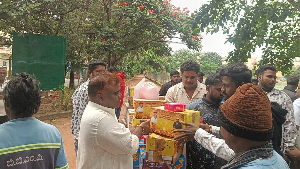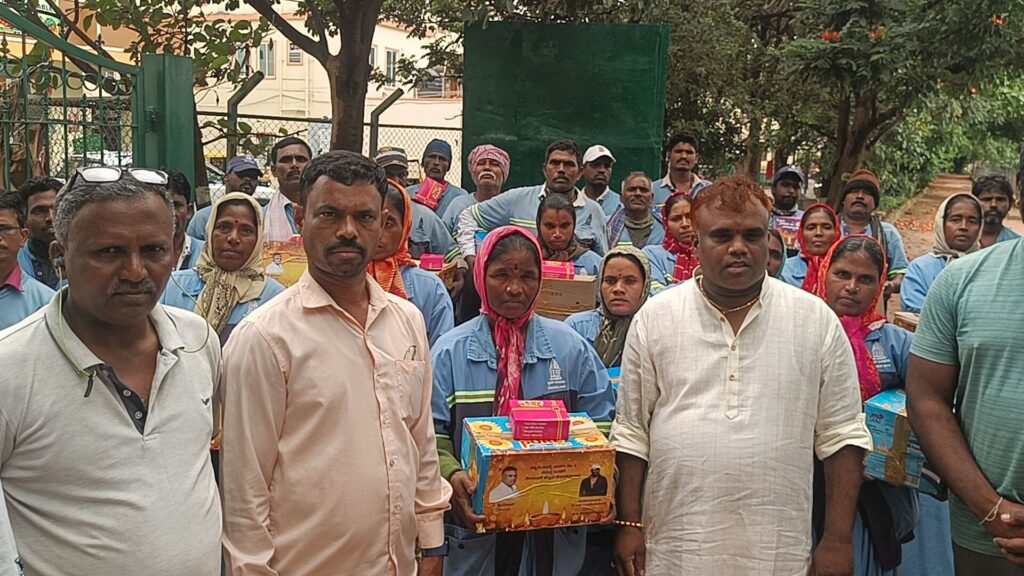 ಯಲಹಂಕ. ದಿನಾಂಕ 22. 10. 25 .ರಂದು ದೀಪಾವಳಿ ಹಬ್ಬದ ಪ್ರಯುಕ್ತ ಬಿಬಿಎಂಪಿ ಪೌರಕಾರ್ಮಿಕರಿಗೆ ವಿ ಶ್ರೀನಿವಾಸ್ ವಕೀಲರು ಹಾಗೂ ಸ್ನೇಹಿತರು ಸೇರಿ ಸಿಹಿ ತಿಂಡಿ ಹಾಗೂ ರೇಷನ್ ಕಿಟ್ಟನ್ನು ವಿತರಿಸಿದರು ಈ ಸಂದರ್ಭದಲ್ಲಿ ಮುನಿತಾಯಪ್ಪ ಪಾಪಣ್ಣ ಹಾಗೂ ಶ್ರೀನಿವಾಸ ಅವರ ಆತ್ಮೀಯ ಬಂಧು ಮಿತ್ರರು ಹಾಗೂ ಊರಿನ ಮುಖಂಡರು ಭಾಗವಹಿಸಿದರು