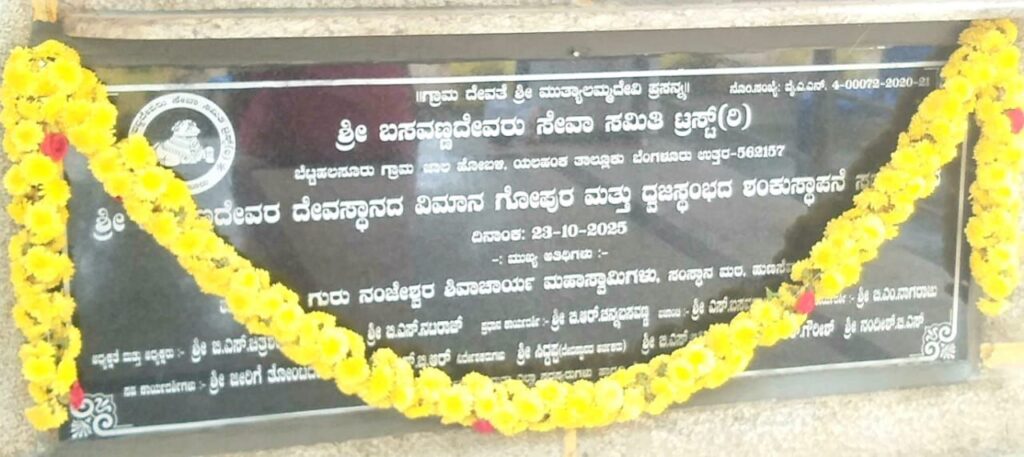 ಬ್ಯಾಟರಾಯನಪುರ : ಕ್ಷೇತ್ರದ ಬೆಟ್ಟಹಲಸೂರು ಗ್ರಾಮದ ಪುರಾತನ ಶ್ರೀ ಬಸವಣ್ಣ ದೇವರ ದೇವಸ್ಥಾನದ ವಿಮಾನ ಗೋಪುರ ಮತ್ತು ಧ್ವಜ ಸ್ಥಂಭ ನಿರ್ಮಾಣ ಕಾರ್ಯದ ಶಂಕುಸ್ಥಾಪನೆಯನ್ನು ಹುಣಸಮಾರನಹಳ್ಳಿ ಸಂಸ್ಥಾನ ಮಠದ ಪಟ್ಟದ ಶ್ರೀ ಗುರುನಂಜೇಶ್ವರ ಸ್ವಾಮೀಜಿ ಬುಧವಾರ ನೆರವೇರಿಸಿದರು.