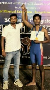 ಬೆಂಗಳೂರು : ದೈಹಿಕ ಶಿಕ್ಷಣ ಮತ್ತು ಕ್ರೀಡಾ ಇಲಾಖೆ, ದೈಹಿಕ ಶಿಕ್ಷಣ ನಿರ್ದೇಶನಾಲಯ ಬೆಂಗಳೂರು ನಗರ ವಿಶ್ವ ವಿದ್ಯಾನಿಲಯ ಮತ್ತು ಆರ್.ಜೆ.ಎಸ್.ಇನ್ಸ್ಟಿಟ್ಯೂಟ್ ಆಫ್ ಮ್ಯಾನೇಜ್ಮೆಂಟ್ ಸ್ಟಡೀಸ್ ಇವರ ಸಹಯೋಗದಲ್ಲಿ ನಗರದ ಕೋರಮಂಗಲದಲ್ಲಿ ಇತ್ತೀಚೆಗೆ ನಡೆದ ಅಂತರ್ ಕಾಲೇಜು ಕುಸ್ತಿ ಪಂದ್ಯಾವಳಿಯಲ್ಲಿ ಬ್ಯಾಟರಾಯನಪುರ ಕ್ಷೇತ್ರದ ‘ಬಂಡಿಕೊಡಿಗೇಹಳ್ಳಿ ಕುಸ್ತಿ ತರಬೇತಿ ಕೇಂದ್ರ’ದಲ್ಲಿ ತರಬೇತುದಾರ ಮೋಹನ್ ಅವರ ಮಾರ್ಗದರ್ಶನದಲ್ಲಿ ತರಬೇತಿ ಪಡೆದಿದ್ದ ಪೈಲ್ವಾನ್ ಅಭಿಷೇಕ್, ಪೈಲ್ವಾನ್ ಸೋನುಕುಮಾರ್ ಮತ್ತು ಪೈಲ್ವಾನ್ ವಿಜಯಲಕ್ಷ್ಮಿ ಅವರು ಗೆಲುವು ಸಾಧಿಸಿ ರಾಷ್ಟ್ರೀಯ ಮಟ್ಟಕ್ಕೆ ಆಯ್ಕೆಯಾಗಿದ್ದಾರೆ.