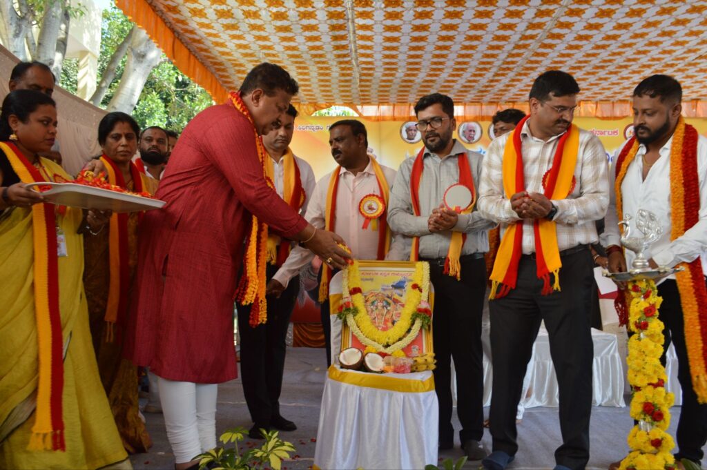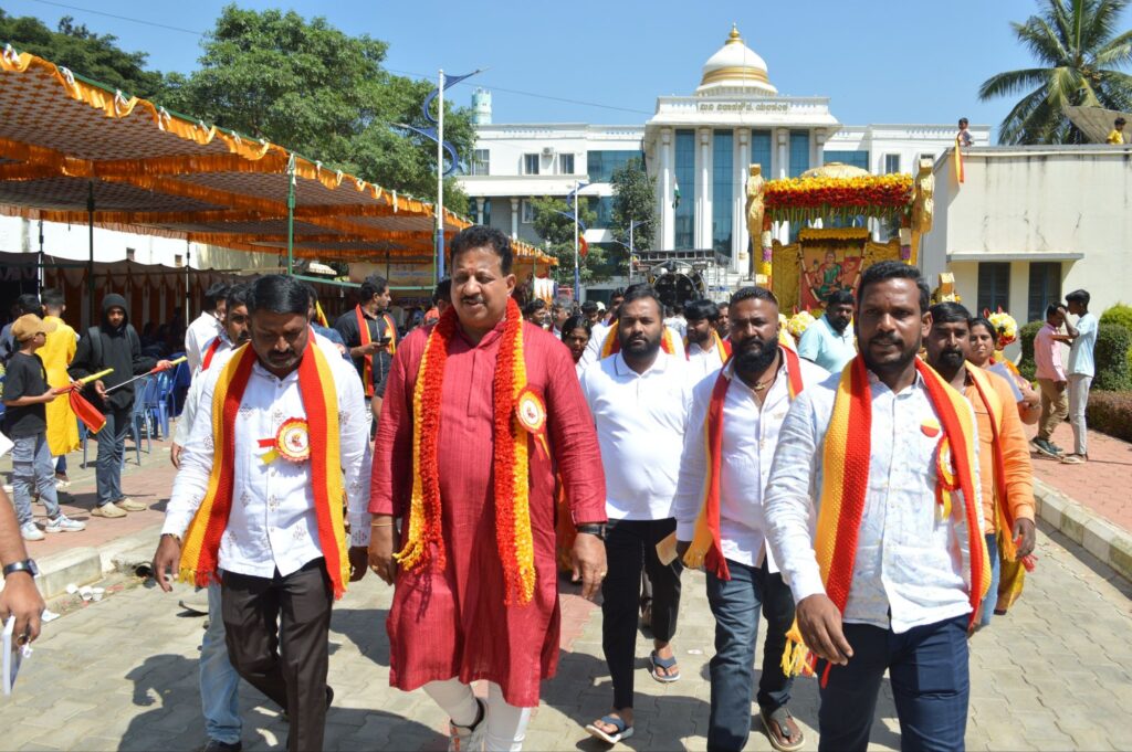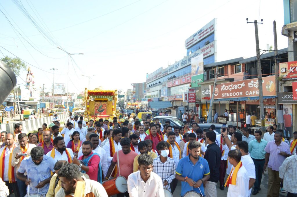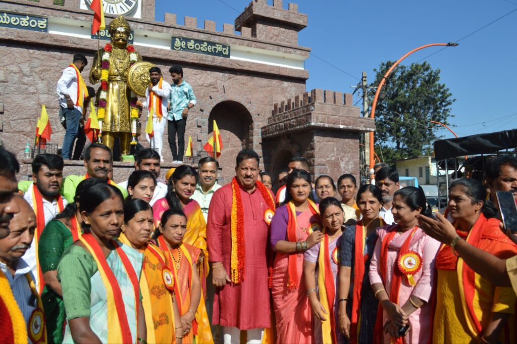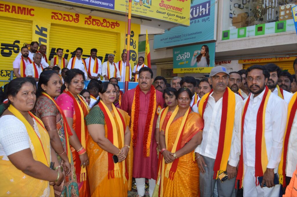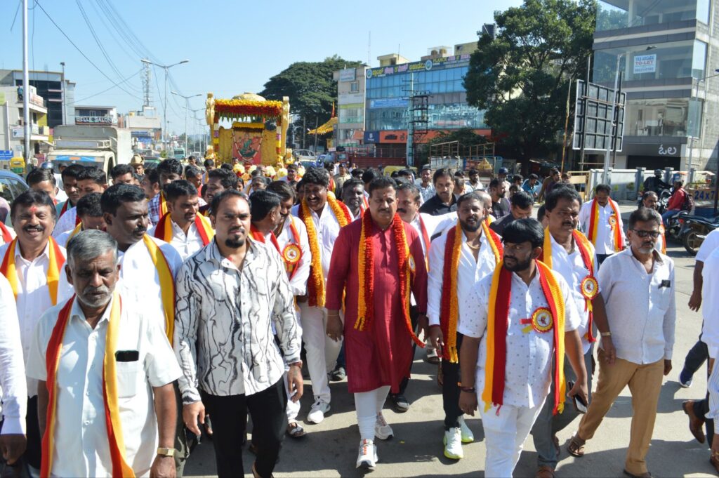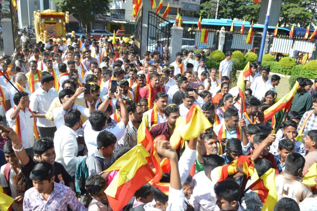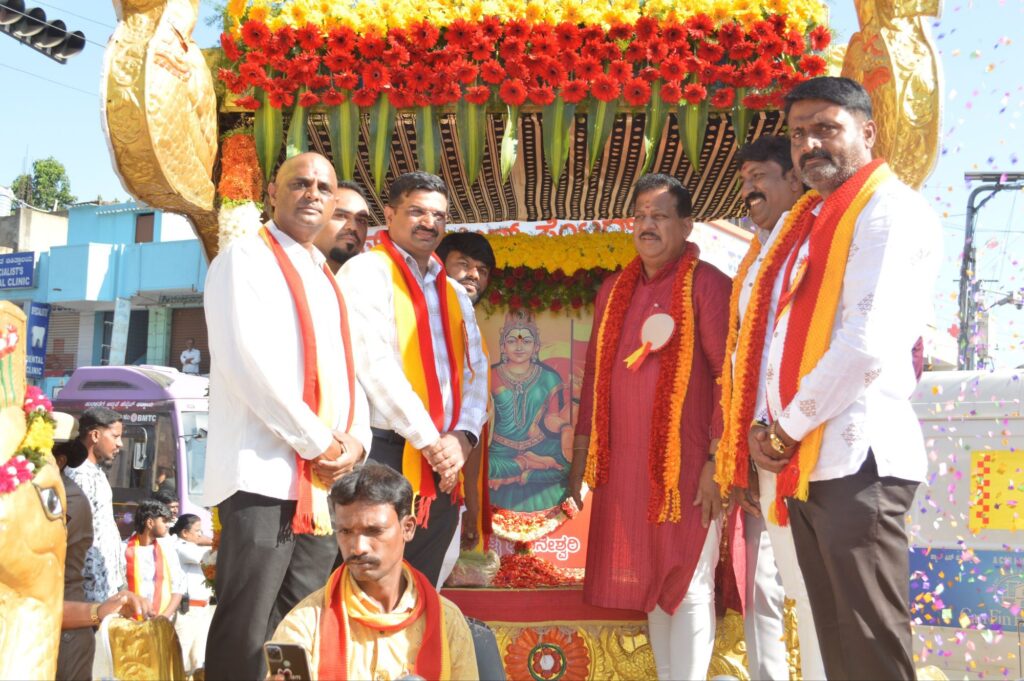ಮೆರವಣಿಗೆ : ಕಾರ್ಯಕ್ರಮಕ್ಕೂ ಮುನ್ನ ಬಿಡಿಕೆ ವೃತ್ತದಲ್ಲಿರುವ ನಾಡಪ್ರಭು ಕೆಂಪೇಗೌಡರ ಪ್ರತಿಮೆಗೆ ಮಾಲಾರ್ಪಣೆ ಮಾಡಿ, ಭುವನೇಶ್ವರಿ ದೇವಿಯ ಪ್ರತಿಮೆಯನ್ನು ಅಲಂಕೃತಗೊಂಡಿದ್ದ ಸಾರೋಟಿನಲ್ಲಿ ಪ್ರತಿಷ್ಠಾಪಿಸಿ, ವಿವಿಧ ಜಾನಪದ ಕಲಾ ತಂಡಗಳ ಕಲಾ ಪ್ರದರ್ಶನದೊಂದಿಗೆ ಮಿನಿ ವಿಧಾನ ಸೌಧದ ವರೆಗೆ ಮೆರವಣಿಗೆ ನಡೆಸಲಾಯಿತು. ಈ ವೇಳೆ ಶಾಲಾ ಕಾಲೇಜು ವಿದ್ಯಾರ್ಥಿಗಳು ಹಾಗೂ ವಿವಿಧ ಕನ್ನಡಪರ ಸಂಘಟನೆಗಳ ಕಾರ್ಯಕರ್ತರು ಸೇರಿದಂತೆ ಸಹಸ್ರಾರು ಜನ ಪಾಲ್ಗೊಂಡಿದ್ದರು.