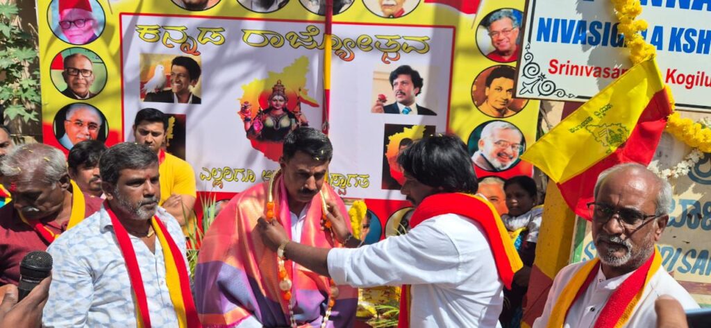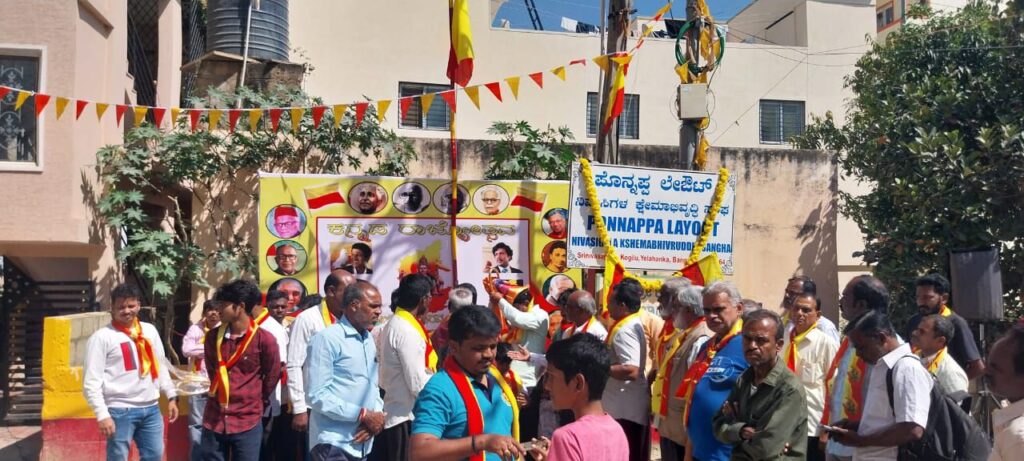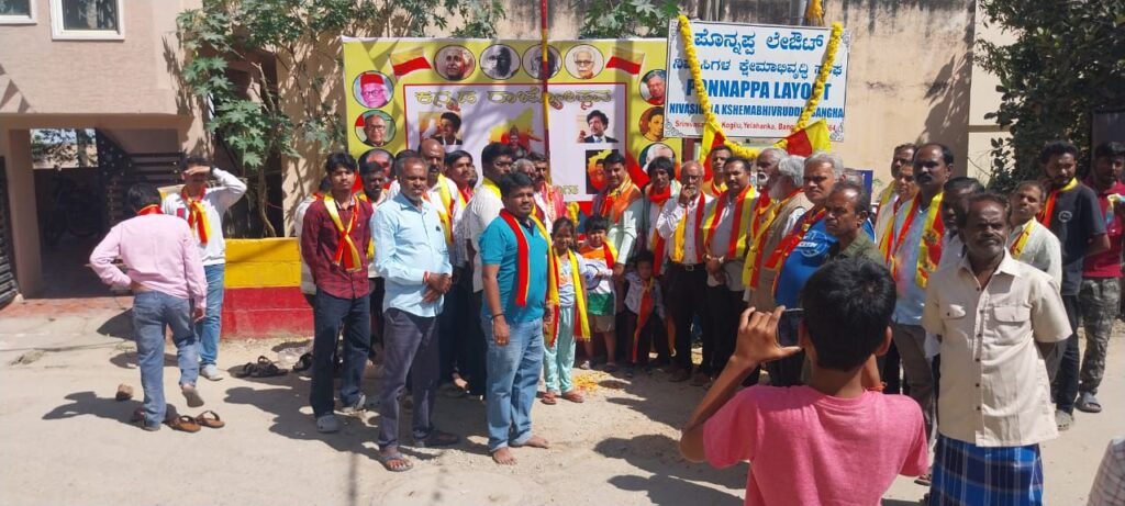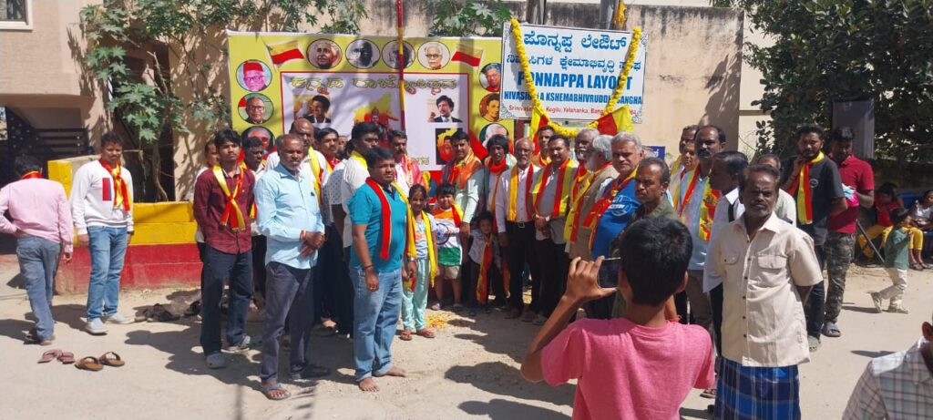 ಯಲಹಂಕ ಸುದ್ದಿ. ಕೋಗಿಲು ಶ್ರೀನಿವಾಸಪುರ ಪೊನ್ನಪ್ಪ ಲೇಔಟ್ ನಿವಾಸಿಗಳ ಕ್ಷೇಮಾಭಿವೃದ್ಧಿ ಸಂಘದ ವತಿಯಿಂದ ಬಹಳ ವಿಜೃಂಭಣೆಯಿಂದ ಅಧ್ಯಕ್ಷರಾದ ಕಾಳಪ್ಪ ನೇತೃತ್ವದಲ್ಲಿ ನಡೆಯಿತು ಈ ಕಾರ್ಯಕ್ರಮಕ್ಕೆ ಮುಖ್ಯ ಅತಿಥಿಗಳಾಗಿ ರೈತರ ಸೇವಾ ಸಹಕಾರ ಸಂಘದ ನಿರ್ದೇಶಕರು ಹಾಗೂ ವಕೀಲರಾದ ಪುಟ್ಟರಾಜು ಧ್ವಜಾರೋಹಣ ಮಾಡುವ ಮೂಲಕ ಕಾರ್ಯಕ್ರಮ ಯಶಸ್ವಿಗೊಳಿಸಿದರು. ನಂತರ ಕನ್ನಡ ನಾಡು-ನುಡಿ ಜಲ ರಾಜ್ಯೋತ್ಸವದ ಬಗ್ಗೆ ವಕೀಲರಾದ ಪುಟ್ಟರಾಜರವರು ವಿವರವಾಗಿ ಭಾಷಣ ಮಾಡಿದರು ಈ ಸಂದರ್ಭದಲ್ಲಿ ಪಬ್ಲಿಕ್ ಪವರ್ ಪತ್ರಿಕೆಯ ಸಂಪಾದಕರಾದ ಆರ್ ಹನುಮಂತು ಮತ್ತು ಸಂಘದ ಎಲ್ಲಾ ಪದಾಧಿಕಾರಿಗಳು ಸುತ್ತಮುತ್ತಲಿನ ಗ್ರಾಮಸ್ಥರು ಭಾಗವಹಿಸಿದರು ಎಲ್ಲರಿಗೂ ಲಘುಪಹಾರ ವ್ಯವಸ್ಥೆ ಮಾಡಲಾಯಿತು ಎಲ್ಲರೂ ಒಟ್ಟುಗುಡಿ ರಾಜ್ಯೋತ್ಸವ ಆಚರಣೆ ಬಹಳ ವಿಜ್ರಮಣೆಯಿಂದ ನೆರವೇರಿಸಿದರು