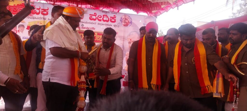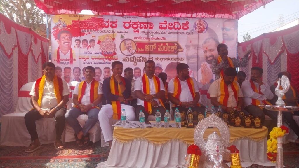 ಯಲಹಂಕ ಸುದ್ದಿ ದಿನಾಂಕ. ೧೪. ೧೧. ೨೦೨೫ ರಂದು. ಯಲಹಂಕ ತಾಲೂಕ ಜಾಲ ಹೋಬಳಿ ಬಾಗಲೂರು ಗ್ರಾಮದಲ್ಲಿ. ಅಲ್ಲಿನ ನಾಡ ಪ್ರಭು ಆಟೋ ಚಾಲಕರ ಸಂಘದ ವತಿಯಿಂದ ಅದ್ದೂರಿಯಾಗಿ ಕನ್ನಡ ರಾಜ್ಯೋತ್ಸವ ಆಚರಿಸಲಾಯಿತು, ಜಾನಪದ ಕಲೆಯ ಡೊಳ್ಳು ಕುಣಿತ ದೊಂದಿಗೆ ಸಾಂಸ್ಕೃತಿಕ ವಾಗಿ ಆರಂಭ ವಾದ ನಾಡ ಹಬ್ಬವನ್ನು ತಾಯಿ ಕನ್ನಡ ಭುವನೇಶ್ವರಿಯ ಪೂಜೆ ಯೊಂದಿಗೆ ಪ್ರಾರಂಭಿಸಿ ಊರಿನಲ್ಲಿ ಮೆರವಣಿಗೆ ಯೊಂದಿಗೆ ವಿಜೃಂಭಣೆ ಇಂದ ರಾಜ್ಯೋತ್ಸವ ಮೆರಗು ಗೊಂಡಿತು, ಇದೆ ಸಮಯದಲ್ಲಿ ಕರ್ನಾಟಕ ರಕ್ಷಣಾ ವೇದಿಕೆಯ ಕನ್ನಡಮ್ಮನ ಸೇವಕ ಕರವೇ ರಾಜ್ಯ ಕಾರ್ಯದರ್ಶಿ ಶ್ರೀ ಆರ್ .ಸಾಥ್ನೂರು ಸುರೇಶ ರವರ ಹುಟ್ಟುಹಬ್ಬವ ನ್ನೂ ಸೇರಿಸಿ ವೈಭವ ವನ್ನು ಇನ್ನಷ್ಟು ಹೆಚ್ಚಿಸಲು ಆಯಿತು, ಕಾರ್ಯಕ್ರಮಕ್ಕೆ ಬಂದಂತಹ ಎಲ್ಲರಿಗೂ ಸನ್ಮಾನ ಕನ್ನಡ ಶಾಲೆಯ ಮಕ್ಕಳಿಗೆ ಸನ್ಮಾನ ವೂ ನಡೆದು ಅತ್ಯಾನಂಥ ಅನಂದವನ್ನು ಜನತೆಗೆ ಆಟೋ ಚಾಲಕರು ನೀಡಿದರು, ಈ ಸಂದರ್ಭ ದಲ್ಲಿ ಗ್ರಾಮದ ಪ್ರಥಮ ಪ್ರಜೆ ಗ್ರಾಮ ಪಂಚಾಯಿತಿ ಅಧ್ಯಕ್ಷ ರಾದ ಕೆಂಪೇಗೌಡ, ಸದಸ್ಯರಾದ ಅನಿಲ್, ಪ್ರಭು ಸ್ವಾಮಿ, ಹಾಗೂ. ಯಲಹಂಕ ಕ್ಷೇತ್ರದ ಕರ್ನಾಟಕ ರಕ್ಷಣಾ ವೇದಿಕೆಯ ಅಧ್ಯಕ್ಷರಾದ ಶಂಕರವರು ಹಾಗೂ ಸಾಯಿ ಕಾಂಕ್ರೀಟ್ ಮಾಲೀಕರಾದ ನಾಗಪ್ಪ ಮತ್ತು ರಕ್ಷಣಾ ವೇದಿಕೆಯ ಪದಾಧಿಕಾರಿಗಳು ಭಾಗವಹಿಸಿದ್ದರು ಹಾಗೂ ಆಟೋ ಚಾಲಕರ ಸಂಘದ ವೆಂಕಟೇಶ್, ನರಸಾರಾಜ್, ಕೃಷ್ಣಪ್ಪ, ಮತ್ತು ಇನ್ನು ಅನೇಕ ಆಟೋ ಚಾಲಕರು ಗ್ರಾಮಸ್ಥರು ಭಾಗವಹಿಸಿದರು ಕಾರ್ಯಕ್ರಮ ನಂತರ ಎಲ್ಲರಿಗೂ ಭೋಜನಕೂಟ ವ್ಯವಸ್ಥೆ ಇತ್ತು ಕಾರ್ಯಕ್ರಮ ಬಹಳ ಅದ್ದೂರಿಯಾಗಿ ನಡೆಯಿತು