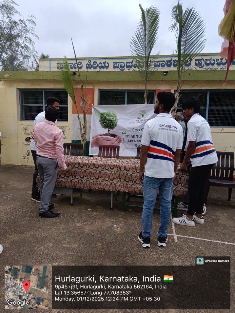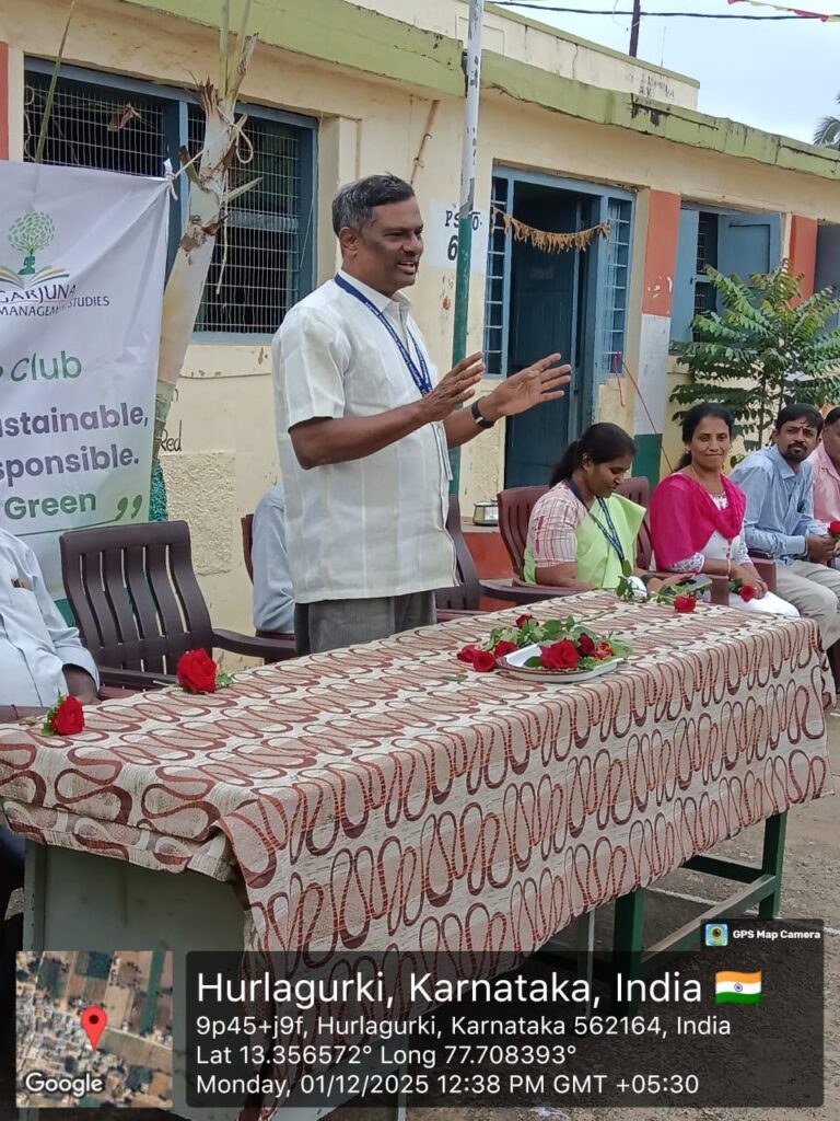 ಪರಿಸರ ಸಂರಕ್ಷಣೆಗೆ ನಾಗಾರ್ಜುನ ಕಾಲೇಜಿನ ವಿದ್ಯಾರ್ಥಿಗಳ ಪರಿಶ್ರಮ ದೇವನಹಳ್ಳಿ ತಾಲ್ಲೂಕು ಹುರುಳುಗುರ್ಕಿ ಗ್ರಾಮದ ಸರ್ಕಾರಿ ಹಿರಿಯ ಪ್ರಾಥಮಿಕ ಶಾಲಾ ಆವರಣದಲ್ಲಿ ನಾಗಾರ್ಜುನ ಕಾಲೇಜ್ ಆಫ್ ಮ್ಯಾನೇಜ್ಮೆಂಟ್ ಸ್ಟಡೀಸ್ ನ ಪ್ರಾಂಶುಪಾಲರಾದ ಡಾ. ಎನ್. ಆನಂದಮ್ಮರವರು ಹಾಗೂ ಬೆಟ್ಟಹಲಸೂರು ಡಾ. ಬಿ.ಎಮ್. ಶ್ರೀನಿವಾಸ ಮೂರ್ತಿರವರ ಅನುಪಸ್ಥಿತಿಯಲ್ಲಿ ಸರ್ಕಾರಿ ಪ್ರಾಥಮಿಕ ಪಾಠಶಾಲೆ ಹುರಳುಗುರ್ಕಿ ಶಾಲಾ ಮುಖ್ಯ ಶಿಕ್ಷಕಿಯಾದ ಶ್ರೀ ಮಮತಾ.ಬಿ.ರವರ ಅಧ್ಯಕ್ಷತೆಯಲ್ಲಿ ಸಮಾಜ ಸೇವಕರು ಹಾಗೂ ದಾನಿಗಳಾದ ಹಸಿರೇ ಉಸಿರು ಟ್ರಸ್ಟ್ ನ ಅಧ್ಯಕ್ಷರಾದ ಬೆಟ್ಟಹಲಸೂರು ಡಾ. ಬಿ ಎಂ ಶ್ರೀನಿವಾಸಮೂರ್ತಿರವರು ಉಚಿತವಾಗಿ ನೀಡಿದ್ದ ಸಸಿಗಳನ್ನು ಶಾಲಾ ಮಕ್ಕಳಿಗೆ ವಿತರಿಸಿ ನಾಗಾರ್ಜುನ ಕಾಲೇಜಿನ ವಿದ್ಯಾರ್ಥಿಗಳ ಸಹಾಯದಿಂದ ಮನೆಮನೆ ಗಂಗೆ ಎನ್ನುವಂತೆ ಎಲ್ಲಾ ವಿದ್ಯಾರ್ಥಿಗಳ ಮನೆಗಳ ಮುಂಭಾಗದಲ್ಲಿ ಗಿಡಗಳನ್ನು ನೆಟ್ಟು ಪರಿಸರದ ಕಾಳಜಿಯನ್ನು ಮೆರೆದರು. ನಾಗಾರ್ಜುನ ಕಾಲೇಜಿನ ಹಸಿರು ಪಡೆ ವಿದ್ಯಾರ್ಥಿಯಾದ ಸುಚಿತ್ರ ರವರು ಸ್ವಾಗತವನ್ನು ಕೋರಿದರು.ಪರಿಸರದ ಉಳಿವು ಮತ್ತು ರಕ್ಷಣೆ ನಮ್ಮೆಲ್ಲರ ಕರ್ತವ್ಯವಾಗಿದೆ ಎಂದು ಕಾಲೇಜಿನ ಉಪನ್ಯಾಸಕರಾದ ಸತ್ಯನಾರಾಯಣಪ್ಪ ರವರು ತಿಳಿಸಿದರು.ಹಾಗೆಯೇ ಅದೇ ಕಾಲೇಜಿನ ಉಪನ್ಯಾಸಕಿಯಾರಾದ ದುರ್ಗಾ ಮೇಡಂ ರವರು ಮಾತನಾಡಿ ಗಿಡಗಳನ್ನು ನೆಟ್ಟು ಅದರ ಪೋ ಷಣೆಯನ್ನು ನಿರಂತರವಾಗಿ ನಿರ್ವಹಿಸಬೇಕೆಂದು ತಿಳಿಸಿದರು.ಉತ್ತಮ ಪರಿಸರ,ಉತ್ತಮವಾದ ಆರೋಗ್ಯಕ್ಕೆ ಸುಗಮದ ಹಾದಿ ಎಂದು ಮುಖ್ಯ ಶಿಕ್ಷಕಿಯವರು ತಿಳಿಸಿದರು ಈ ಕಾರ್ಯಕ್ರಮದಲ್ಲಿ ಶಾಲೆಯ ಎಸ್ ಡಿ ಎಂ ಸಿ ಅಧ್ಯಕ್ಷರು,ರಕ್ಷಣಾ ವೇದಿಕೆಯ ಲೋಕೇಶ್ ರವರು,ನಾಗಣ್ಣ ರವರು, ರಾಮಚಂದ್ರಪ್ಪನವರು, ಈರೇಗೌಡರವರು, ಕಾಲೇಜಿನ ಉಪನ್ಯಾಸಕರುಗಳು ಶಾಲಾ ಶಿಕ್ಷಕಿಯರು ಹಾಗೂ ಕಾಲೇಜಿನ ಎಲ್ಲಾ ವಿದ್ಯಾರ್ಥಿಗಳು ಭಾಗವಹಿಸಿದ್ದರು.ಪರಿಸರ ಪಡೆಯ ವಿದ್ಯಾರ್ಥಿಗಳಾದ ನಿತಿನ್ ಮತ್ತು ಸುಚಿತ್ರ ರವರ ವಂದನಾರ್ಪಣೆಯೊಂದಿಗೆ ಕಾರ್ಯಕ್ರಮ ಮುಕ್ತಾಯವಾಯಿತು.