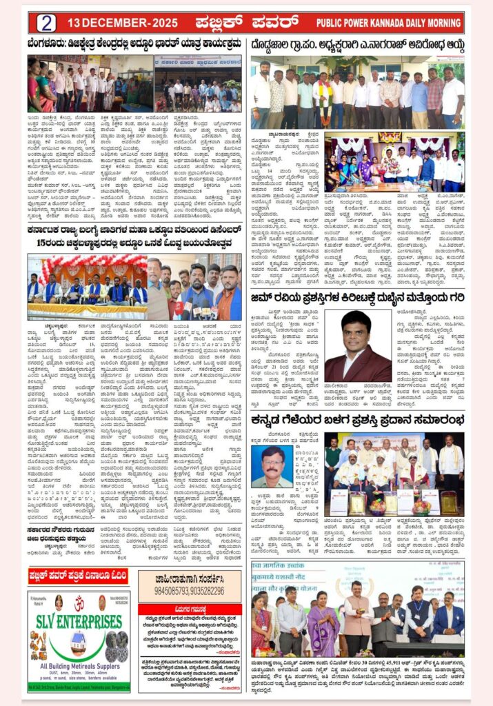 Post navigation ಯಲಹಂಕ. ದೊಡ್ಡಜಾಲ ಗ್ರಾ.ಪಂ. ಅಧ್ಯಕ್ಷರಾಗಿ ಎ.ನಾಗರಾಜ್ ಅವಿರೋಧ ಆಯ್ಕೆ : 18.21 ಕೋಟಿ ರು.ವೆಚ್ಚದ ವಿವಿಧ ಅಭಿವೃದ್ಧಿ ಕಾಮಗಾರಿಗಳಿಗೆ ಎಸ್ ಆರ್ ವಿಶ್ವನಾಥ್ ಚಾಲನೆ :