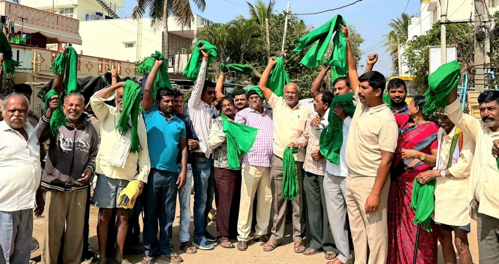 ಯಲಹಂಕ : ಯಲಹಂಕ ತಾಲ್ಲೂಕಿನ ರಾಜಾನುಕುಂಟೆ- ಬೆಟ್ಟಹಲಸೂರು ನಡುವೆ ಹೊಸ ರೈಲ್ವೆ ಲೈನ್ ನಿರ್ಮಾಣಕ್ಕೆ ಮುಂದಾಗಿರುವ ಸರ್ಕಾರದ ಕ್ರಮವನ್ನು ವಿರೋಧಿಸಿ ರಾಜಾನುಕುಂಟೆ, ಹೊನ್ನೇನಹಳ್ಳಿ,ನಾಗದಾಸನಹಳ್ಳಿ ತಿಮ್ಮಸಂದ್ರ ಮತ್ತು ಬೆಟ್ಟಹಲಸೂರು ಗ್ರಾಮಗಳ ರೈತರು ಕರ್ನಾಟಕ ರಾಜ್ಯ ರೈತಸಂಘ ಮತ್ತು ಹಸಿರುಸೇನೆಯ ರಾಜ್ಯ ಕಾರ್ಯದರ್ಶಿ ಬಿ.ಜಿ.ನಂಜುಂಡಪ್ಪ ಬೆಟ್ಟಹಲಸೂರು ಅವರ ನೇತೃತ್ವದಲ್ಲಿ ಭಾನುವಾರ ತಿಮ್ಮಸಂದ್ರ ಗ್ರಾಮದಲ್ಲಿ ಬೃಹತ್ ಪ್ರತಿಭಟನೆ ನಡೆಸಿದರು.