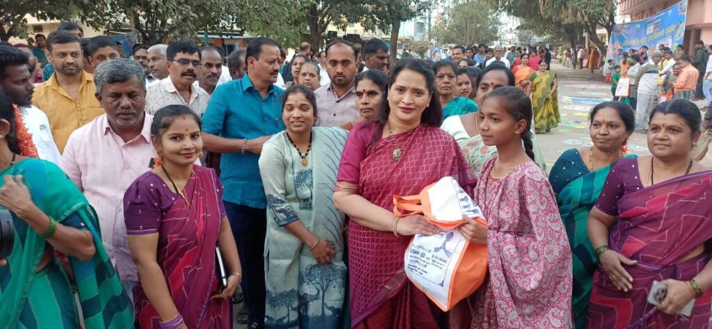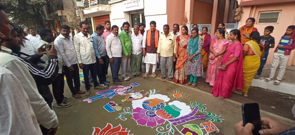 ರಂಗೋಲಿ ಬಿಡಿಸಿ ತಮ್ಮ ಪ್ರತಿಭೆ ಅನಾವರಣ ಮಾಡಿದ ಐನೂರಕ್ಕೂ ಹೆಚ್ಚು ಮಹಿಳೆಯರು :