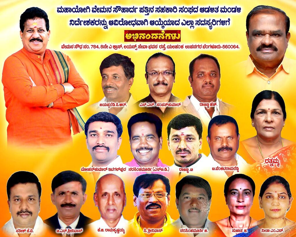 ಮಹಾಯೋಗಿ ವೇಮನ ಸೌಹಾರ್ದ ಪತ್ತಿನ ಸಹಕಾರಿ ಸಂಘದ ಚುನಾವಣಾ ಫಲಿತಾಂಶ :