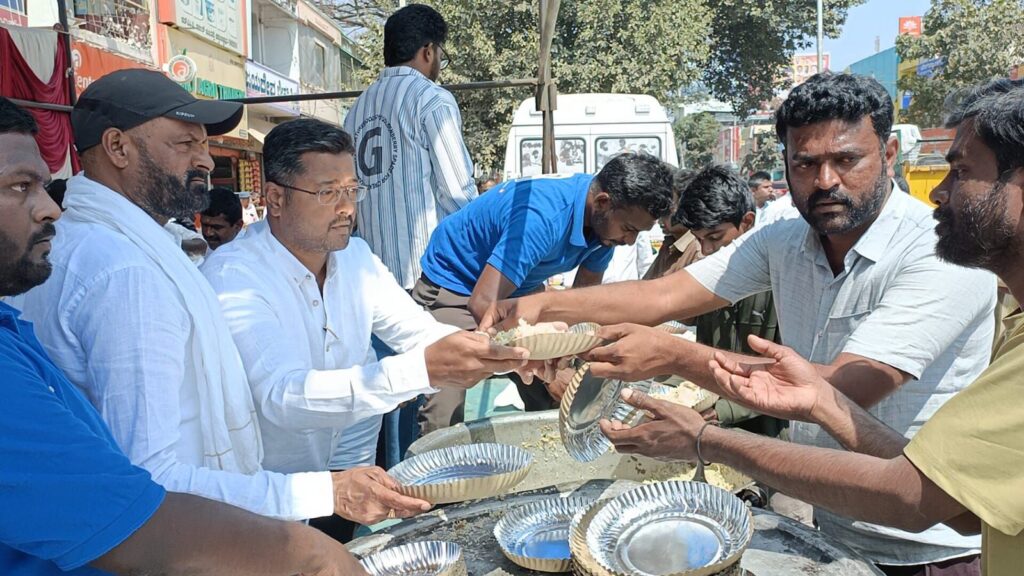 ಕಾಂಗ್ರೆಸ್ ಯುವ ಮುಖಂಡ ವಿನಯ್ ಬಂಗಾರಿ ಹಾಗೂ ಟಿಎಪಿಸಿಎಂಎಸ್ ನಿರ್ದೇಶಕ ಬಿಸೇಗಾರಹಳ್ಳಿ ನಾಗೇಶ್ ಅವರ ನೇತೃತ್ವದಲ್ಲಿ ಕೈವಾರ ತಾತಯ್ಯ ದೇವಸ್ಥಾನದಲ್ಲಿ 501 ತೆಂಗಿನಕಾಯಿ ಒಡೆದು ವಿಶೇಷ ಪೂಜೆ ಸಲ್ಲಿಸಲಾಯಿತು.ಈ ಸಂದರ್ಭದಲ್ಲಿ ದೇವರಲ್ಲಿ ಶಾಸಕ ಪ್ರದೀಪ್ ಈಶ್ವರ್ ಅವರಿಗೆ ಆಯುಷ್ಯ,ಆರೋಗ್ಯ ಹಾಗೂ ರಾಜಕೀಯವಾಗಿ ಇನ್ನಷ್ಟು ಎತ್ತರಕ್ಕೆ ಬೆಳೆಯಲಿ ಎಂದು ಪ್ರಾರ್ಥನೆ ಸಲ್ಲಿಸಲಾಯಿತು.ನಂತರ ನಗರದ ಖಾಸಗಿ ಬಸ್ ನಿಲ್ದಾಣ ಹಾಗೂ ಬಲಮುರಿ ವೃತ್ತದಲ್ಲಿ ಬಿರಿಯಾನಿ ವಿತರಿಸುವ ಮೂಲಕ ಅನ್ನಸಂತರ್ಪಣೆ ಏರ್ಪಡಿಸಲಾಗಿತ್ತು.