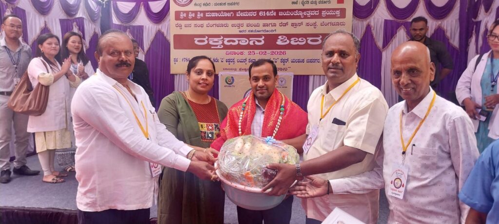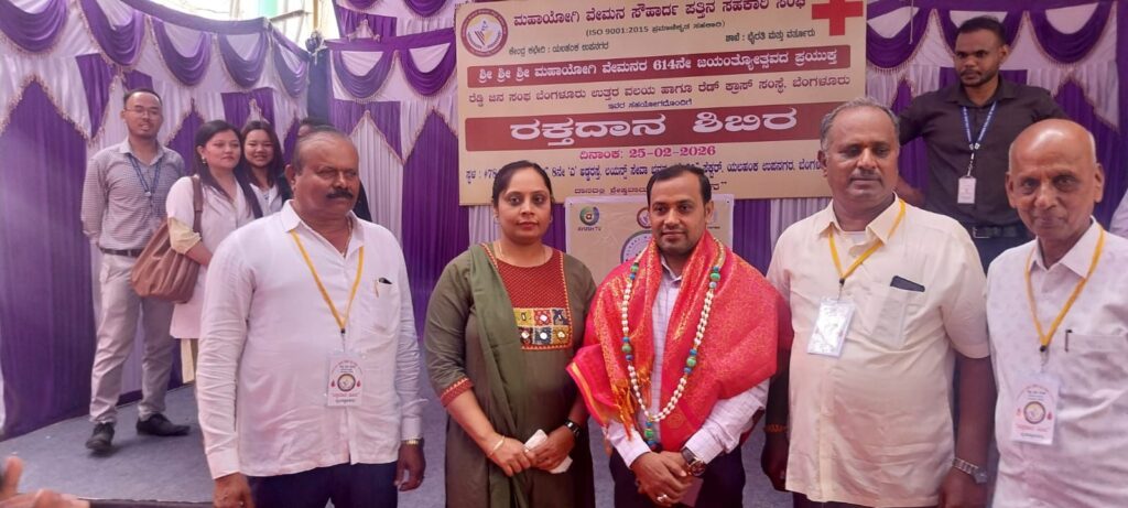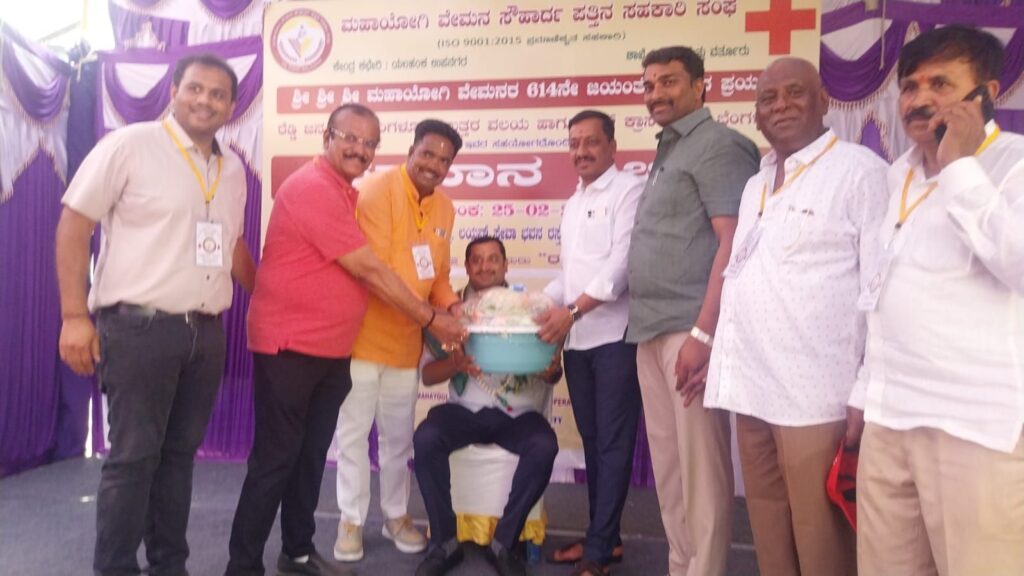 ಮಹಾಯೋಗಿ ವೇಮನ ಸೌಹಾರ್ದ ಪತ್ತಿನ ಸಹಕಾರಿ ಸಂಘ, ರೆಡ್ಡಿ ಜನಸಂಘ, ರೆಡ್ ಕ್ರಾಸ್ ಸಂಸ್ಥೆಯ ಸಹಯೋಗದಲ್ಲಿ ಮಹಾಯೋಗಿ ವೇಮನರ 614ನೇ ಜಯಂತ್ಯೋತ್ಸವದ ಪ್ರಯುಕ್ತ ಯಲಹಂಕ ಉಪನಗರದಲ್ಲಿ ಆಯೋಜಿಸಿದ್ದ ಬೃಹತ್ ರಕ್ತದಾನ ಶಿಬಿರ ಉದ್ಘಾಟಿಸಿ ಮಾತನಾಡಿದರು.