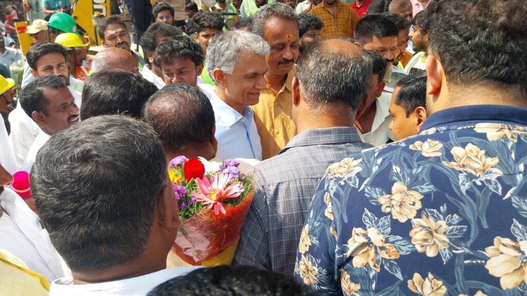ಬ್ಯಾಟರಾಯನಪುರ : ಬ್ಯಾಟರಾಯನಪುರ ಕ್ಷೇತ್ರದ ಕಟ್ಟಿಗೆನಹಳ್ಳಿಯಲ್ಲಿ 110 ಗ್ರಾಮಗಳ ಯೋಜನೆಯಡಿಯಲ್ಲಿ ಕಾವೇರಿ ಪೈಪ್ ಲೈನ್, ಒಳಚರಂಡಿ ಪೈಪ್ ಲೈನ್ ಅಳವಡಿಕೆ ಕಾಮಗಾರಿ, ಸಾತನೂರು ಗ್ರಾಮದ ಎಸ್ ಎಲ್ ವಿ ಬಡಾವಣೆಯಲ್ಲಿ ರಸ್ತೆ ಅಭಿವೃದ್ಧಿ ಕಾಮಗಾರಿ, ಮಾರೇನಹಳ್ಳಿ ಗ್ರಾಮ ಪಂಚಾಯಿತಿ ವ್ಯಾಪ್ತಿಯ ಹೊಸಹಳ್ಳಿ ಮತ್ತು ಮಂಚಪ್ಪನಹಳ್ಳಿ ಗ್ರಾಮಗಳಲ್ಲಿ ರಸ್ತೆ ಅಭಿವೃದ್ಧಿ ಕಾಮಗಾರಿ ಸೇರಿದಂತೆ ಸುಮಾರು 137 ಕೋಟಿ ರೂ ಅಂದಾಜು ವೆಚ್ಚದ ಅಭಿವೃದ್ಧಿ ಕಾಮಗಾರಿಗಳಿಗೆ ಸಚಿವ ಕೃಷ್ಣಭೈರೇಗೌಡ ಚಾಲನೆ ನೀಡಿದರು.