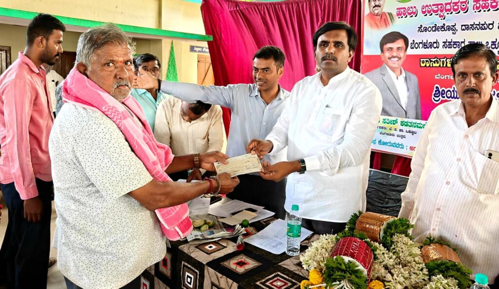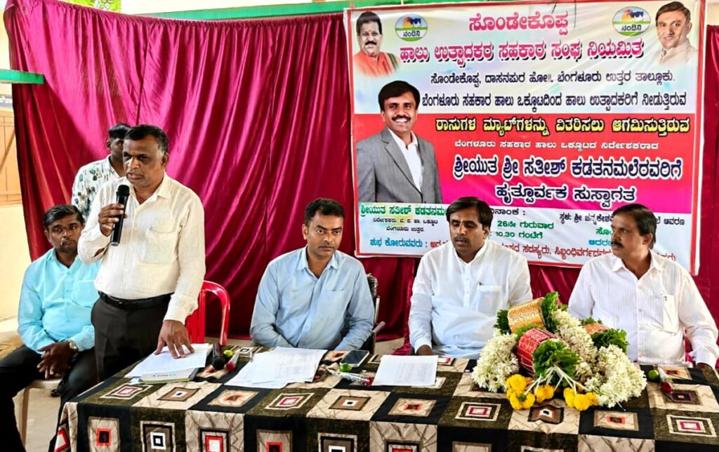 ಬೆಂಗಳೂರು ಸಹಕಾರ ಹಾಲು ಒಕ್ಕೂಟದ ವ್ಯಾಪ್ತಿಯ ಯಲಹಂಕ ಕ್ಷೇತ್ರದ ದಾಸನಪುರ ಹೋಬಳಿ ಹಾಲು ಉತ್ಪಾದಕರ ಸಹಕಾರ ಸಂಘಗಳ ಹಾಲು ಉತ್ಪಾದಕರಿಗೆ ಮ್ಯಾಟ್ ಮತ್ತು ವೈದ್ಯಕೀಯ ವೆಚ್ಚದ ಚೆಕ್ ವಿತರಣೆ ಕಾರ್ಯಕ್ರಮದಲ್ಲಿ ಪಾಲ್ಗೊಂಡು ಮಾತನಾಡಿದ ಅವರು ‘ಬೆಂಗಳೂರು ಹಾಲು ಒಕ್ಕೂಟದ ಹೊಸ ಆಡಳಿತ ಮಂಡಳಿಯ ಸಮರ್ಥ ಕಾರ್ಯವೈಖರಿ ಯಿಂದಾಗಿ ಹಾಲು ಒಕ್ಕೂಟವು ಲಾಭದ ಹಾದಿಯಲ್ಲಿ ಸಾಗುತ್ತಿದ್ದು, ಲಾಭಾಂಶವನ್ನು ಹಾಲು ಉತ್ಪಾದಕರು, ಸಿಬ್ಬಂದಿ, ಸಹಕಾರ ಸಂಘಗಳಿಗೆ ಹಂಚುವ ಮೂಲಕ ಅವರ ಹಿತಕಾಯುವ ಕೆಲಸ ಮಾಡಿದೆ. ಹಾಲು ಉತ್ಪಾದಕ ರೈತರ ಹಿತರಕ್ಷಣೆಯ ದಿಸೆಯಲ್ಲಿ ಬಮೂಲ್ ವಿಮೆ, ರಾಸುಗಳ ಖರೀದಿಗೆ ನೆರವು, ದೊಡ್ಡ ಮಟ್ಟದಲ್ಲಿ ಹೈನುಗಾರಿಕೆ ಮಾಡಲು ಸಾಲ ಯೋಜನೆ ಸೇರಿದಂತೆ ಹಲವು ಜನೋಪಯೋಗಿ ಯೋಜನೆಗಳನ್ನು ರೂಪಿಸಿದೆ. ಒಟ್ಟಿನಲ್ಲಿ ಹಾಲು ಉತ್ಪಾದಕ ರೈತನೆಂಬ ಭಾಗ್ಯವಂತನ ಬದುಕಿಗೆ ಹೈನುಗಾರಿಕೆ ಆಸರೆಯಾಗಲು ಅಗತ್ಯವಿರುವ ಎಲ್ಲಾ ಕ್ರಮಗಳನ್ನು ಒಕ್ಕೂಟ ಕೈಗೊಂಡಿದೆ. ಹೈನುಗಾರಿಕೆಯಲ್ಲಿ ತೊಡಗಿರುವ ರೈತರ ಹಿತವನ್ನು ಕಾಪಾಡಲು ಬಮೂಲ್ ಒಕ್ಕೂಟವು ಬದ್ಧವಾಗಿದ್ದು, ಸ್ವಾವಲಂಬಿ ಬದುಕು ಕಟ್ಟಿಕೊಳ್ಳಲು ಅಗತ್ಯ ಪ್ರೋತ್ಸಾಹ, ಸಹಕಾರವನ್ನು ಒಕ್ಕೂಟವು ನೀಡುತ್ತಿದೆ. ರೈತರು ಮತ್ತು ಗ್ರಾಹಕರ ಹಿತ ಕಾಪಾಡುವುದೇ ನಮ್ಮ ಧ್ಯೇಯವಾಗಿದೆ ಎಂದರು.