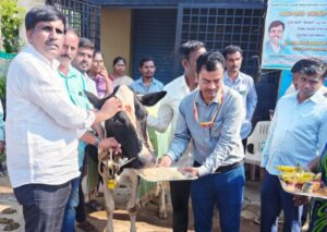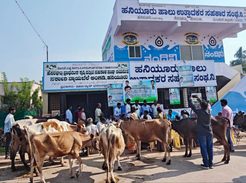 ಯಲಹಂಕ : ಬೆಂಗಳೂರು ಸಹಕಾರ ಹಾಲು ಒಕ್ಕೂಟ(ಬಮೂಲ್)ದಿಂದ ನೂತನವಾಗಿ ಆರಂಭಿಸಿರುವ ಗುಂಪು ರಾಸು ವಿಮೆ ಯೋಜನೆಗೆ ಯಲಹಂಕ ಕ್ಷೇತ್ರದ ಹನಿಯೂರು ಗ್ರಾಮದಲ್ಲಿ ಗೋಪೂಜೆ ಮಾಡುವ ಮೂಲಕ ಬೆಂಗಳೂರು ಹಾಲು ಒಕ್ಕೂಟದ ನಿರ್ದೇಶಕ ಸತೀಶ್ ಕಡತನಮಲೆ ಗುರುವಾರ ಚಾಲನೆ ನೀಡಿದರು.
