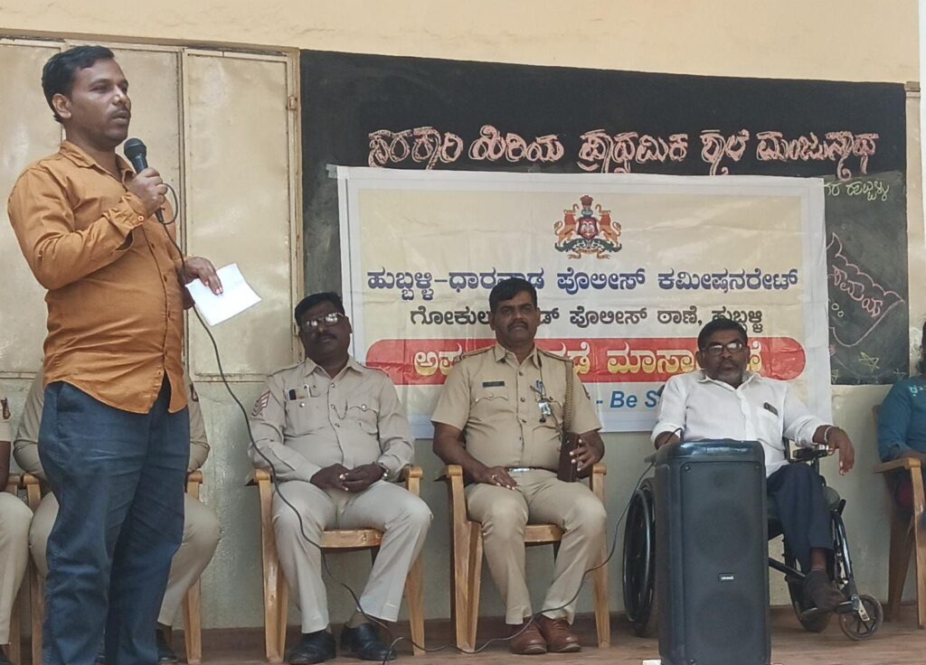 ಹುಬ್ಬಳ್ಳಿ - ಧಾರವಾಡ ಪೋಲಿಸ್ ಕಮಿಷನರೇಟ್ ಹುಬ್ಬಳ್ಳಿ ಶಹರದ ಗೋಕುಲ ರಸ್ತೆಯಲ್ಲಿರುವ ಪೋಲಿಸ್ ಠಾಣೆಯ ಸಹಾಯಕ ಪೋಲಿಸ್ ಇನ್ಸ್ಪೆಕ್ಟರ್ ಜಿ. ಸಿ. ರಜಪೂತ ಮಾತನಾಡುತ್ತ ಸೈಬರ್ ಕ್ರೈಮ್ ಗಳಾದಾಗ ಹಣ ವಂಚನೆ, ಕಾಗದ ಪತ್ರ ವ್ಯವಹಾರ ಮೋಸ ಮುಂತಾದ ಪ್ರಕರಣಗಳಿಗೆ 193೦, ಕಳ್ಳತನ, ದರೋಡೆ, ಜಗಳ ಪ್ರಕರಣಗಳಿಗೆ 112 ಹಾಗೂ ಮಕ್ಕಳ ಹಕ್ಕುಗಳ ಉಲ್ಲಂಘನೆ ಆದಾಗ 1೦98 ಸಂಖ್ಯೆಯ ಸಹಾಯವಾಣಿಗೆ ಕರೆಮಾಡಿ ತ್ವರಿತ ಪರಿಹಾರ ಪಡೆಯಬೇಕೆಂದು ಸಲಹೆ ನೀಡಿದರು. ಅಲ್ಲದೆ ಮಕ್ಕಳು ಅಪರಾಧಗಳನ್ನು ಮಾಡಿದರೆ ಅವರಿಗೂ ಸಹ ರಿಮಾಂಡ್ ಹಾಲ್ ನಲ್ಲಿ ಹಾಕಲಾಗುತ್ತದೆ ಹಾಗಾಗಿ ಯಾರು ಕೆಟ್ಟ ಕೆಲಸ ಮಾಡದೆ ಸಂವಿಧಾನ ಆಶಯದಂತೆ ಸರಕಾರ ನೀಡಿರುವ ಉಚಿತ ಶಿಕ್ಷಣ ಪಡೆದು ಉತ್ತಮ ವ್ಯಕ್ತಿಗಳಾಗಿ ಎಂದು ಹಾರೈಸಿದರು. ರಾಜ್ಯ - ರಾಷ್ಟ್ರಗಳ ವ್ಯತ್ಯಾಸ ಇಲ್ಲದೆ ಅನಾದಿ ಕಾಲದಿಂದಲೂ ಅಪರಾಧಗಳು, ಮೋಸ, ವಂಚನೆಗಳು ಸಮಾಜದ ಮುಗ್ದ ಜನರ ನಿದ್ದೆಗೆಡಿಸಿವೆ. ಅತ್ಯಾಚಾರ, ಹತ್ಯಾಚಾರ, ಸುಲಿಗೆ, ಜೀವ ಬೆದರಿಕೆ, ಬಾಲ್ಯವಿವಾಹ, ಬಾಲ ಕಾರ್ಮಿಕತೆ, ಭ್ರೂಣ ಹತ್ಯೆ, ಜೀತಗಾರಿಕೆ, ದಾಸ್ಯ, ಡ್ರಗ್ಸ್ ಮಾಪಿಯಾ, ಜೂಜು, ಮಾದಕ ವಸ್ತುಗಳ ಸೇವನೆ, ಬಾಂಬ್ ಬೆದರಿಕೆ, ಭಯೋತ್ಪಾದನೆ, ವರದಕ್ಷಣೆ ಕಿರುಕುಳ, ಯ್ಯಾಸಿಡ್ ಹಾವಳಿ ಈ ರೀತಿ ಸಾವಿರಾರು ಹೀನ ಕೃತ್ಯಗಳನ್ನು ಕೇಲವರು ಮಾಡುತ್ತಾ ಬಂದಿದ್ದಾರೆ. ಇದರಿಂದ ಜನ ಸಾಮಾನ್ಯರ ಬದುಕು ಜರ್ಜರಿತವಾಗುತ್ತದೆ. ಇದನ್ನು ಸರಿದೂಗಿಸಿ ಶಾಂತಿ ಸ್ಥಾಪಕನೆಗಾಗಿ ಬುದ್ಧ, ಬಸವ, ಅಂಬೇಡ್ಕರ್, ಗಾಂಧಿಜಿ ಅನೇಕ ಮಹಿಮರು ಸಮಾಜ ಸುಧಾರಣೆ ಮಾಡಿದ್ದಾರೆ. ಆದಾಗ್ಯೂ ದಿನೇ ದಿನೇ ಅಪರಾಧಗಳು ಹೆಚ್ಚಳವಾಗುತ್ತಿದೆ ಹಾಗಾಗಿ ಪೋಲಿಸ್ ಇಲಾಖೆಗೆ ಅಪರಾಧಗಳನ್ನು ತಡೆಲು ಮತ್ತು ತಪಿಸ್ಥತರಿಗೆ ಶಿಕ್ಷೆ ನೀಡಲು ವಹಿಸಲಾಗಿದೆ ಎಂದು ಶಿಕ್ಷಕ ಸಾಹಿತಿ ಸುಭಾಷ್ ಚವ್ಹಾಣ ಸ್ಪಷ್ಟಪಡಿಸಿದರು. ಮುಖ್ಯ ಶಿಕ್ಷಕರಾದ ಹೆಚ್. ಬಿ. ಕೊರವರ ರವರು ಮಾತನಾಡುತ್ತ ಆರಕ್ಷಕ ಬಂಧುಗಳು ಅಪರಾಧ ತಡೆ ಮಾಸಾಚರಣೆ ನಿಮಿತ್ತ (೨೦ ಡಿಸೆಂಬರ್ ೨೦೨೩ರ) ಸರಕಾರಿ ಹಿರಿಯ ಪ್ರಾಥಮಿಕ ಕನ್ನಡ ಶಾಲೆ ಮಂಜುನಾಥ ನಗರಕ್ಕೆ ಬಂದು ಅಪರಾಧಗಳನ್ನು ಮಾಡುವುದರಿಂದ ಆಗುವ ಕೆಟ್ಟಪರಿಣಾಮಗಳ ಬಗ್ಗೆ ವಿದ್ಯಾರ್ಥಿಗಳಿಗೆ ತಿಳುವಳಿಕೆ ನೀಡಿ, ಸನ್ನಡತೆಗೆ ಮಾರ್ಗದರ್ಶನ ಮಾಡಿದ್ದಕ್ಕಾಗಿ ಅಭಿನಂದನೆಗಳನ್ನು ಸಲ್ಲಿಸಿದರು. ಪೋಲಿಸರು ಮೊದಲಿಗೆ ನೋಟ ಬೀರಿ ಚಲನವಲನಗಳನ್ನು ಪರಿಶೀಲಿಸಿ ಆನಂತರ ಲಾಠಿಯಿಂದ ಶಿಕ್ಷಿಸಿ ಕಳ್ಳಕಾಕರ ಹೆಡೆಮೂರಿ ಕಟ್ಟಿ, ಸುರಕ್ಷಿತ ಸಮಾಜಕ್ಕೆ ಅಪಾರ ಕೋಡುಗೆ ನೀಡುತ್ತಾರೆಂದು ಪ್ರಶಂಸೆ ಸಲ್ಲಿಸಿದರು. ಮುಖ್ಯ (ಹೆಡ್ ಕಾನ್ಸ್ಟೇಬಲ್) ಆರಕ್ಷಕರಾದ ವಸಂತ ಗುಡಗೇರಿ, ಆರಕ್ಷಕರಾದ ಸುರೇಶ್ ಕೋಲಿ, ಪ್ರತಾಪರವರು ವೇದಿಕೆಯಲ್ಲಿ ಇದ್ದರು. ಶಾಲಾ ಹಿರಿಯ ಶಿಕ್ಷಕಿಯರಾದ ಚೌಕಿಮಠ, ಚಕ್ರಸಾಲಿ, ವೇದಾ ನಾಗನೂರ, ಸೈನಾಭಿ ನದಾಫ, ರೂಪ ಹೆಬ್ಬಳ್ಳಿ ಇತರರು ಉಪಸ್ಥಿತರಿದ್ದರು. ಡಿಸೆಂಬರ್ ನಲ್ಲಿ ಆಯೋಜಿಸುವ ಅಪರಾಧ ತಡೆ ಮಾಸಾಚಾರಣೆಯ ಕಾರ್ಯಕ್ರಮವನ್ನು ಸುಭಾಷ್ ಚವ್ಹಾಣರವರು ಅಪರಾಧಗಳನ್ನು ತಡೆಗಟ್ಟುವಲ್ಲಿ ಪೋಲಿಸರ ಕಾರ್ಯವೈಖರಿಯ ಮೇಲೆ ಬೆಳಕು ಚೆಲ್ಲುವ 'ಮಗಧೀರ' ಎಂಬ ಸ್ವರಚಿತ ಕವಿತೆಯನ್ನು ವಾಚಿಸಿ, ಆರಕ್ಷಕ ಬಂಧುಗಳ ಮೆಚ್ಚುಗೆ ಪಡೆದು, ನಿರೂಪಿಸಿ ವಂದಿಸಿದರು.