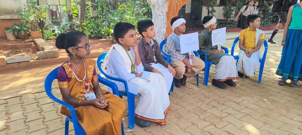 ವಿದ್ಯಾರ್ಥಿಗಳು ಸರಪಂಚ್ / ಪಂಚಾಯತ್ ವೇಷಭೂಷಣದಲ್ಲಿ ಬಂದರು.