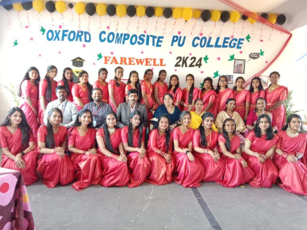 ಯಲಹಂಕ ಶ್ರೀನಿವಾಸಪುರ. . ಆಕ್ಸ್ಫರ್ಡ್ ಕಾಂಪೋಸಿಟ್ ಪಿಯು ಕಾಲೇಜ್ ಶ್ರೀನಿವಾಸಪುರ ಕೋಗಿಲು ಮೇನ್ ರೋಡ್ ಯಲಹಂಕ 2023-24ನೇ ಸಾಲಿನ ದ್ವಿತೀಯ ಪಿಯುಸಿ ನಲ್ಲಿ ವ್ಯಾಸಂಗ ಮಾಡುತ್ತಿರುವ ವಿದ್ಯಾರ್ಥಿನಿಯರಿಗೆ ದಿನಾಂಕ. 7/2/2024 ನೇ ತಾರೀಖಿನಂದು ಬೀಳ್ಕೊಡುಗೆ ಸಮಾರಂಭವನ್ನು ಆಯೋಜಿಸಲಾಗಿತ್ತು. ಸಮಾರಂಭದಲ್ಲಿ