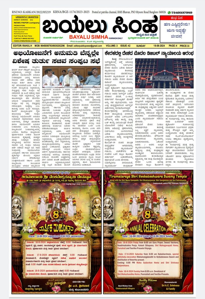 9845085793 9035282296 7349337989 Post navigation BAYALU SIMHA kannada daily News paper ಸಿದ್ದರಾಮಯ್ಯ ವಿರುದ್ಧ ರಾಜಕೀಯ ಪಿತೂರಿ ನಡೆಯುತ್ತಿದೆ- ಬಿ.ಎಸ್.ರಫಿ ಉಲ್ಲಾ