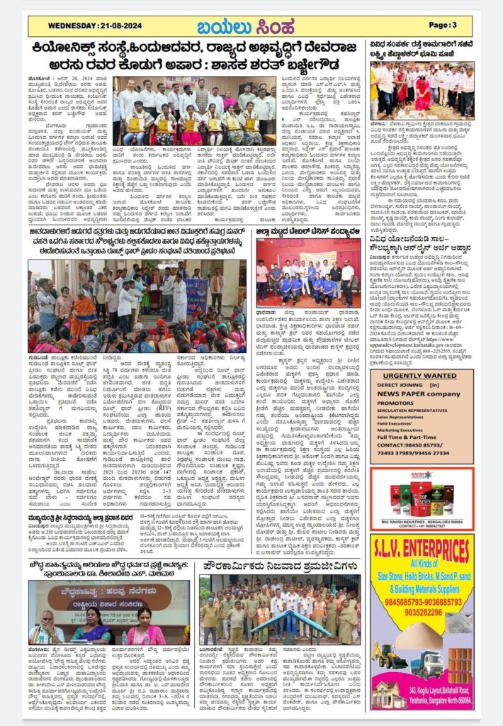 Post navigation ಗ್ರಾಮ ಪಂಚಾಯಿತಿಗಳು ಕುಟುಂಬದ ಮಾದರಿಯಲ್ಲಿದ್ದರೆ ಅಭಿವೃದ್ಧಿ ಸಾಧ್ಯ : ಸತೀಶ್ ಕಡತನಮಲೆ ಸದ್ಭಾವನಾ ದಿನಾಚರಣೆ ಎಂದರೆ ನಾವೆಲ್ಲರೂ ಒಂದು. ಎಂಬ ಸಮಾನತೆಯ ದೃಷ್ಟಿಕೋನ – ಪ್ರಾಂಶುಪಾಲೆ ಡಾ. ಶೀಲಾದೇವಿ ಎಸ್ ಮಳಿಮಠ. ಬಸವೇಶ್ವರ ವಾಣಿಜ್ಯ ಕಲಾ ವಿಜ್ಞಾನ ಮಹಾವಿದ್ಯಾಲಯ ರಾಜಾಜಿನಗರ ಬೆಂಗಳೂರು